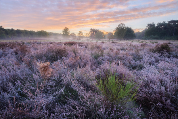 Das war zwar jetzt nicht der Sonnenaufgang, den ich eigentlich erwartet hätte, aber zumindest war’s bunt. Erwartet hatte ich richtig schönen Nebel. Bekommen habe ich Kälte und kaum Nebel. Ist aber ja auch ganz nett, wenn die Landschaft mit so einer dünnen Reifschicht überzogen ist. Habe ich schon erwähnt, dass es ziemlich bunt war? Zu bunt für meinen Geschmack…