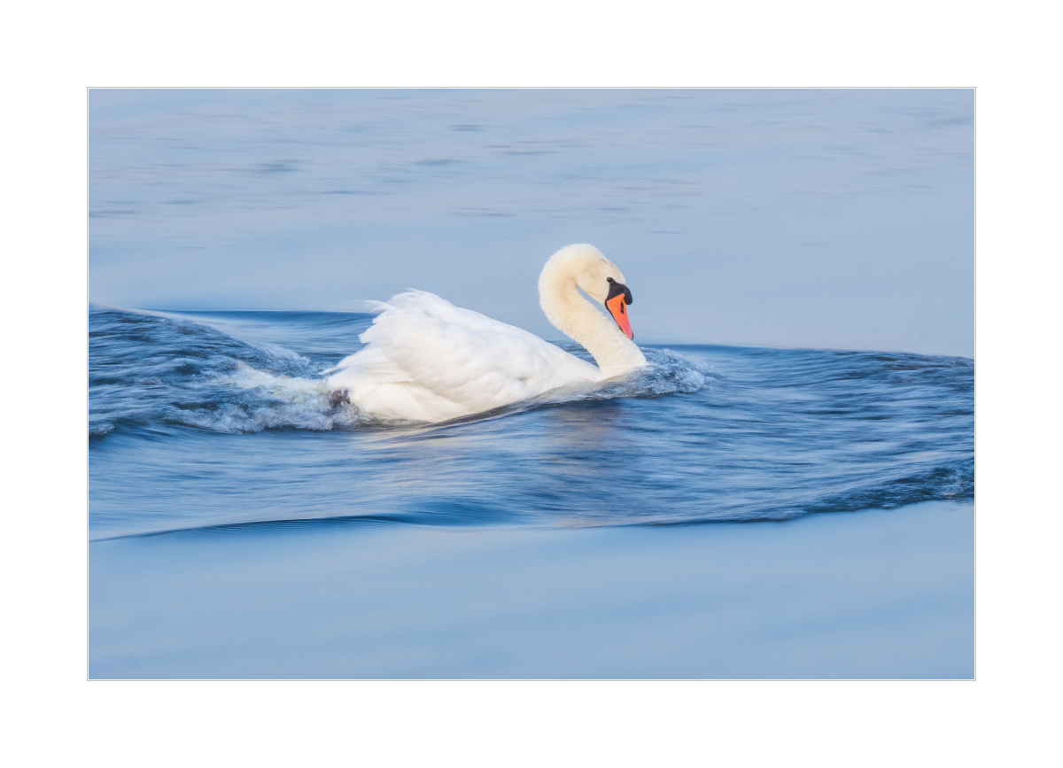 Bis dahin ein paar Impressionen von heute Morgen. Den Anfang machte diese hübsche Stimmung vor Sonnenaufgang, wenn alles so rosa-blau erscheint. Blöderweise sind die Schwäne in der Phase fast die ganze Zeit irgendwo am Rand des Sees rumgeschwommen. Immerhin ganz kurz waren sie etwas weiter “im” See:
