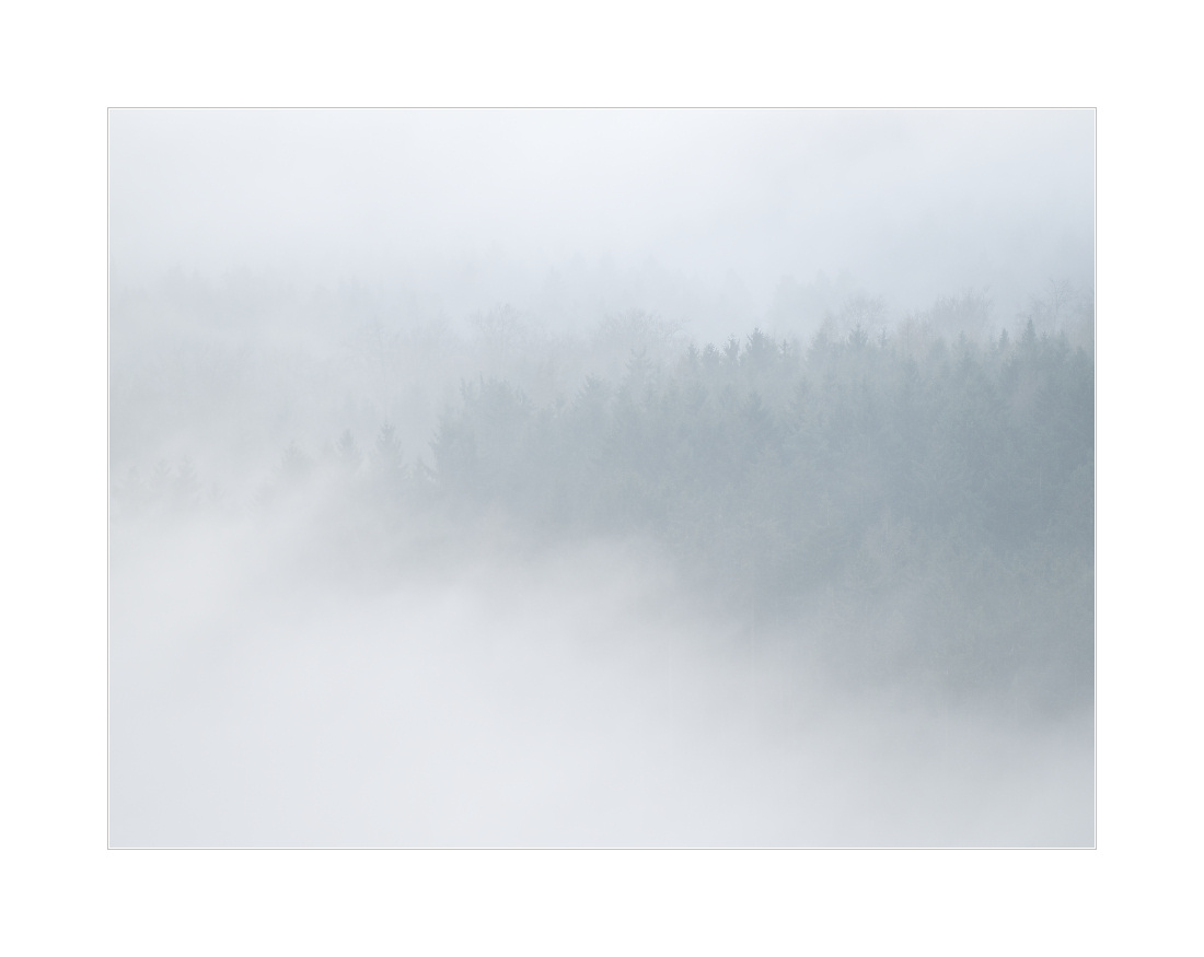 Wer weiß? Vielleicht gibt’s ja bald die ersten Schneeglöckchenfotos. Bis dahin: Nebel unter und über Wald: