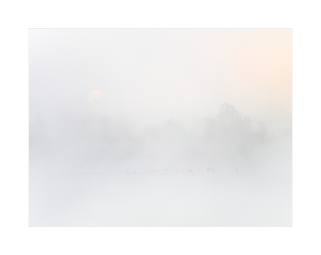 Jedenfalls. Heute Morgen war es dann, wie gesagt, noch nebliger als gestern. Immerhin konnte man noch etwas erkennen… Kurz danach war dann überhaupt nichts mehr zu sehen. Und die Schwäne haben auch noch geschlafen.