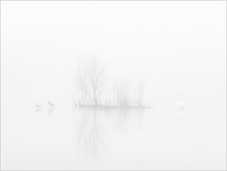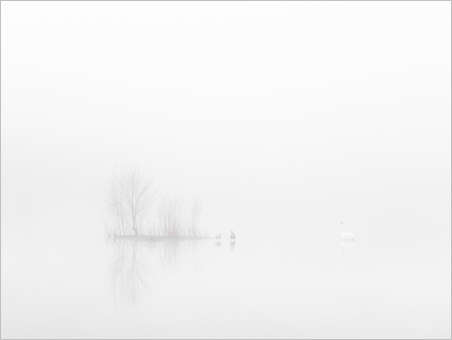 Dichter Nebel, der manchmal noch etwas dichter war, dann wieder etwas weniger dicht und wie so oft zur richtigen Zeit dann genau die richtige Dichte hatte. Die “richtige Zeit” ist natürlich dann gekommen, wenn die Schwäne “im Wasser” stehen. Hat mal wieder gepasst heute Morgen. Viele Fotos mit kleinen Schwänen und großer Umgebung. Genau wie ich es mag im Nebel: