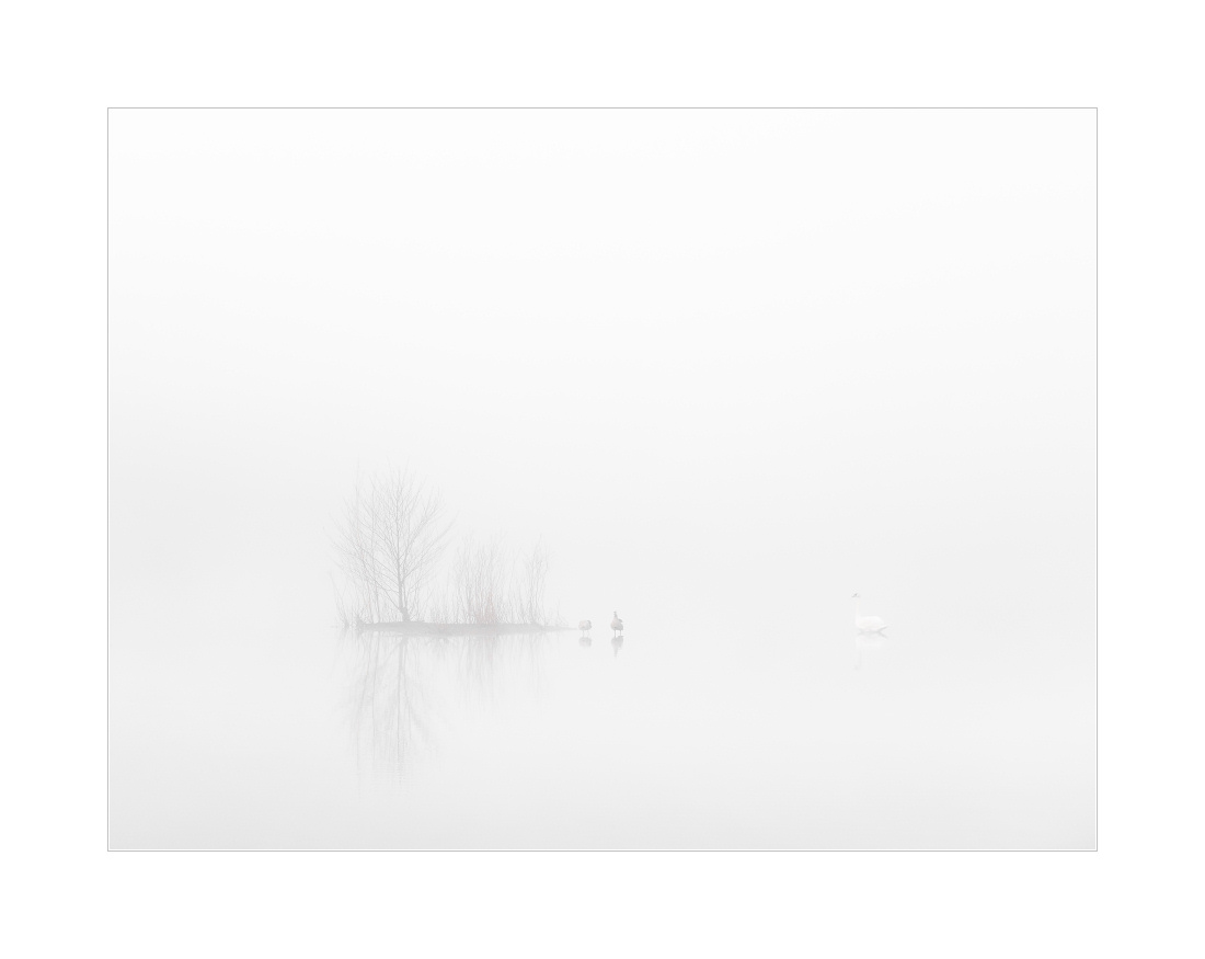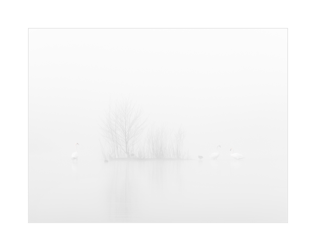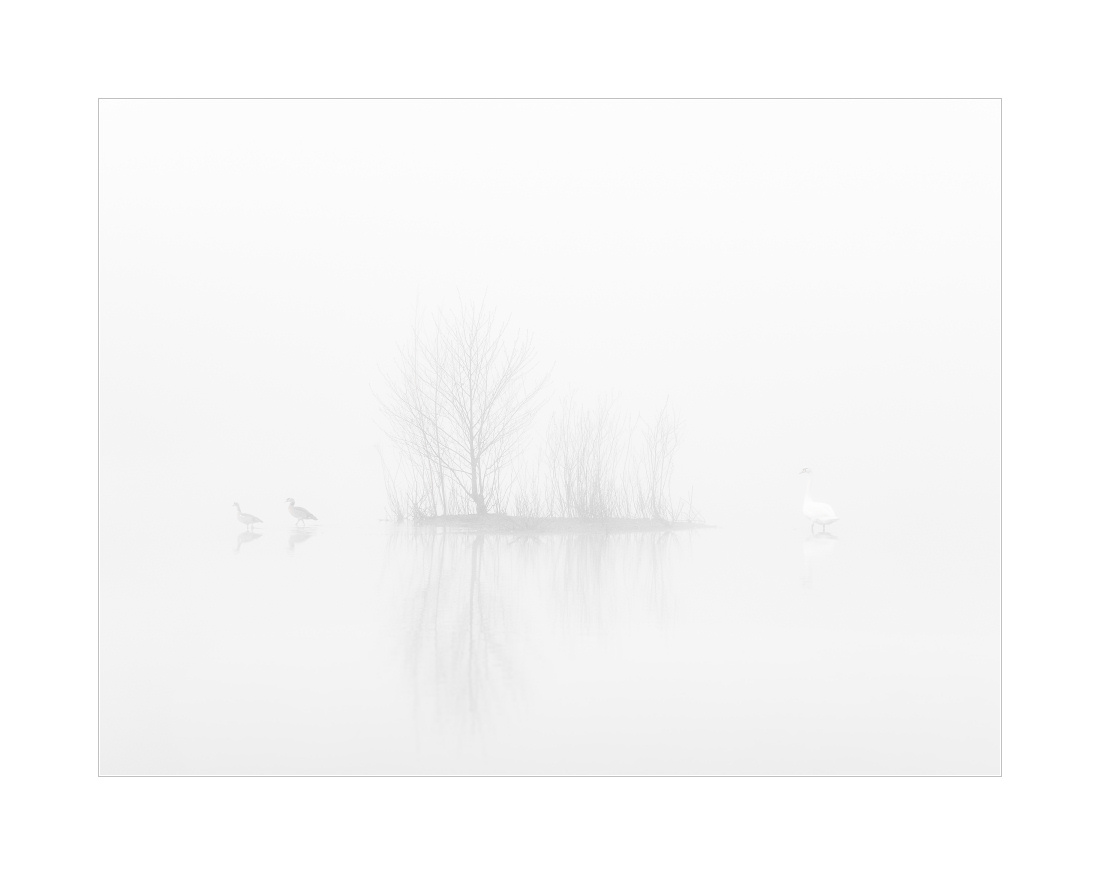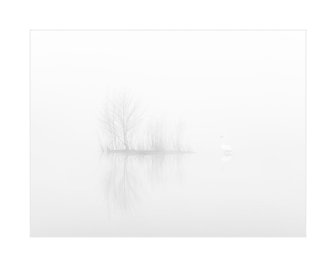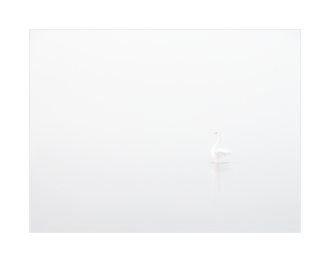 Dichter Nebel, der manchmal noch etwas dichter war, dann wieder etwas weniger dicht und wie so oft zur richtigen Zeit dann genau die richtige Dichte hatte. Die “richtige Zeit” ist natürlich dann gekommen, wenn die Schwäne “im Wasser” stehen. Hat mal wieder gepasst heute Morgen. Viele Fotos mit kleinen Schwänen und großer Umgebung. Genau wie ich es mag im Nebel: