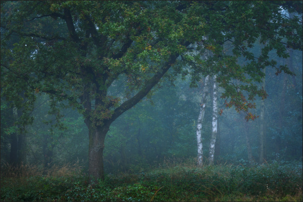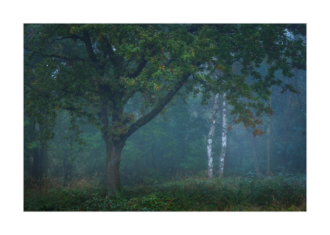 Heute kein neues Foto, sondern ein zweites vom gestrigen kurzen Ersatzausflug. War mir gestern noch nicht so ganz sicher ob es mir gefällt, inzwischen mag ich es zumindest so sehr, dass es für den Blog reicht. Eine Eiche mit Birken im Nebel: