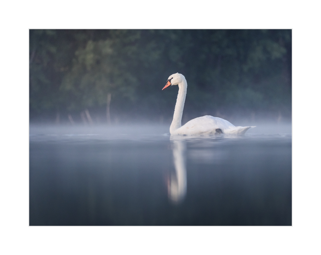 Einen Schwan habe ich allerdings erwischt, mit etwas Nebel und ansonsten nicht viel. Immerhin schwimmen noch immer (mindestens) elf Schwäne durch die Seen. Also wenn’s mal wieder passt irgendwann, dann könnte es sogar richtig passen.