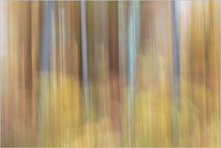 Noch ein Nachtrag: Wenn schon mal wieder nicht so richtig scharf, dann jetzt auch noch zwei ganz “unscharfe” Fotos… Das da oben ist übrigens mit einer Pseudodoppelbelichtung entstanden: 30 Sekunden belichtet und nach der Hälfte der Zeit kurz die Hand davor gehalten, den Fokus auf ganz nah gestellt und dann die Hand wieder weggenommen. Die beiden folgenden Fotos sind ein Wischer (Baumstämme mit verfärbtem Farn als Farbgeber) und ein Wackler. Ach, was tut man nicht alles wenn man keine Motive findet die in kompletter Schärfe was hergeben… ;)