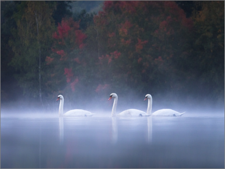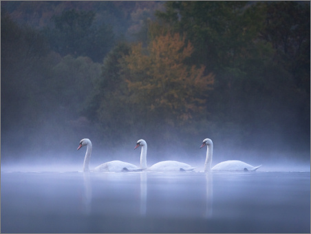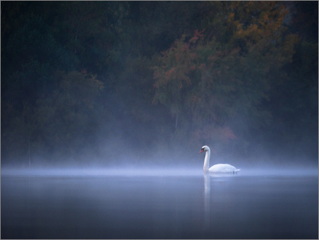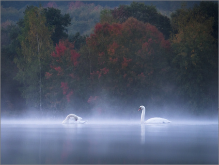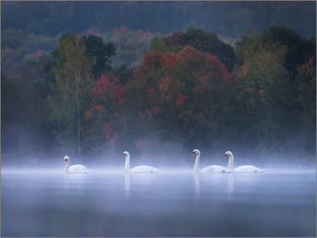 Deshalb gibt’s dieses Mal eher dunklere Fotos. Von Schwänen. Natürlich. Beim ersten Foto war’s noch so dunkel, dass ich kaum was gesehen habe, die Kamera auch nicht… Als es dann heller wurde, gab’s nette Stimmungen mit herbstlich verfärbten Bäumen, Nebel und den Schwänen. Hier ein paar Impressionen: