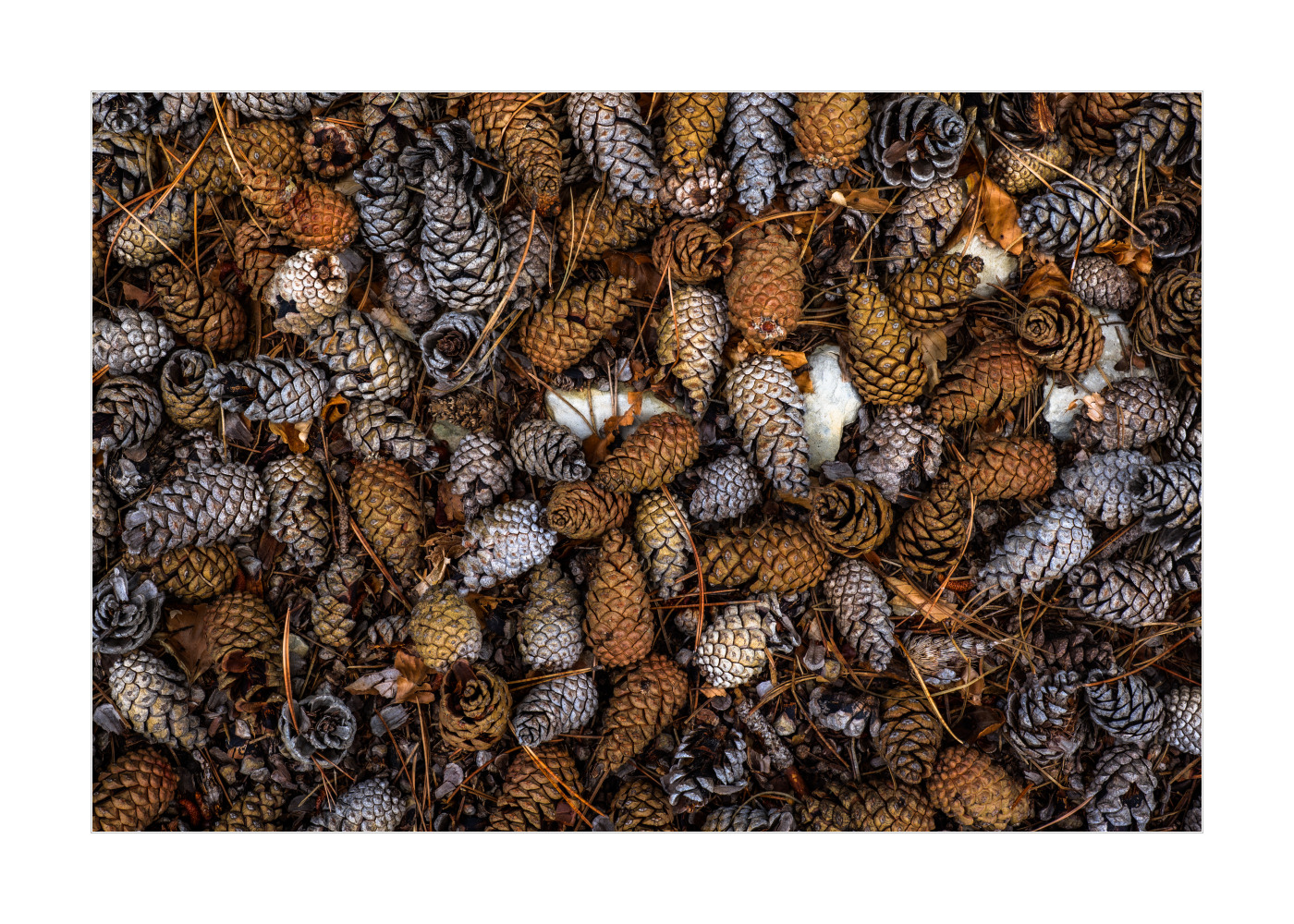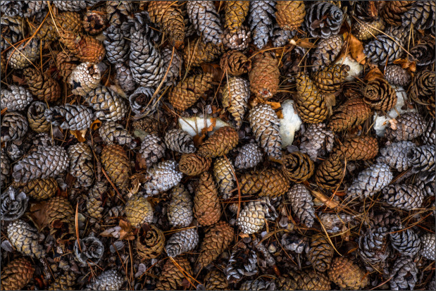 Die verschiedenen Farben der Zapfen sehen fast aus wie extra schön bunt gemischt dahin drapiert.