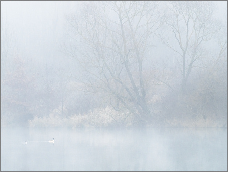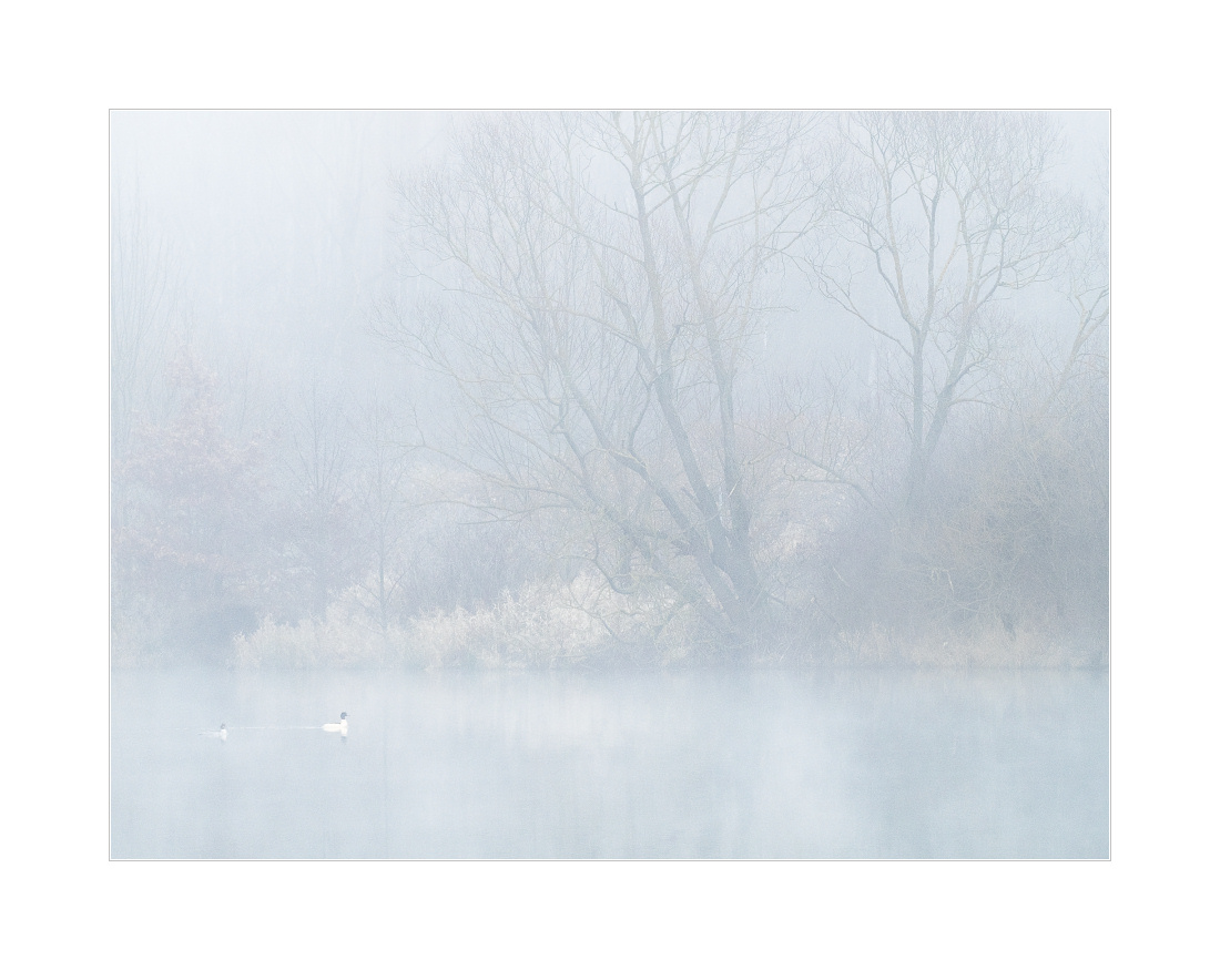 Den ganzen Tag lang schon Nebel jetzt. Am Morgen war es zusätzlich noch frostig, deshalb war nicht nur alles glatt (abenteuerliches Radfahren), sondern es gab auch Reif. Praktisch. Als Ziel habe ich mir dieses Mal die Baggerseen ausgesucht. War glaub ich eh schon länger nicht mehr dort. Hier ein paar Impressionen von heute Morgen: