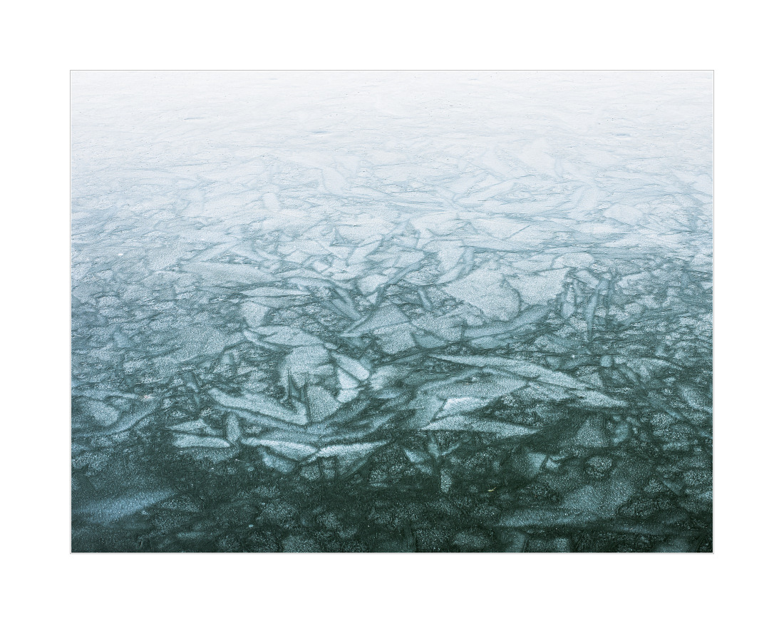 Aber zurück zu heute Morgen: Immerhin tummeln sich inzwischen (mindestens) acht Schwäne dort rum. Zwei davon sind glaub ich über Nacht im Eis festgefroren. Macht aber nichts, das taut heute tagsüber eh wieder auf… Fotografisch habe ich mich genau diesem Eis gewidmet. Hier ein paar Impressionen: