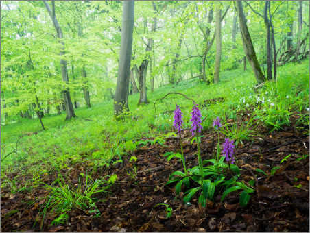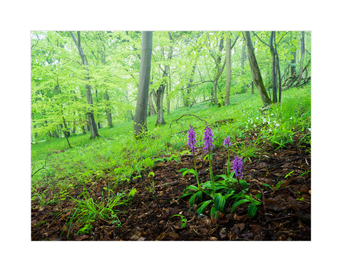 Der ergiebige gestrige Regen hat nicht nur dazu geführt, dass es nicht mehr so trocken ist, sondern auch einen echt feuchten Morgen ermöglicht. Feucht auch im Sinne von: Heh, da ist ja Nebel! Und so bin ich in den hübschesten Wald, den es in einigermaßen vertretbarer Entfernung gibt gefahren und habe dort mein Glück gesucht: Im NSG Hangelstein in der Nähe von Gießen, dort wo ich letztens schon die Stattlichen Knabenkräuter fotografiert habe. Es war einfach edel und das obwohl es nicht den Nebel gab, den ich mir erhofft hatte. Aber wann gibt es schon mal genau den Nebel, den ich gerne hätte? Fast nie glaube ich. Hier ein paar Impressionen von heute Morgen:
