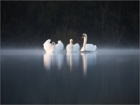 Auch heute Morgen hat sich das Wetter der vergangenen beiden Tage mehr oder weniger wiederholt. Nur ein paar mehr hohe Wolken gab’s und es war ein kleines bisschen wärmer. Kalt war’s trotzdem noch. Dazu windstill. Natürlich hat’s dadurch auch wieder ein bisschen genebelt. Wobei gerade vom Nebel würde ich mir dann morgen mal etwas mehr wünschen. Schon der Abwechslung auf den Fotos wegen… ;)