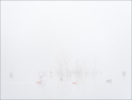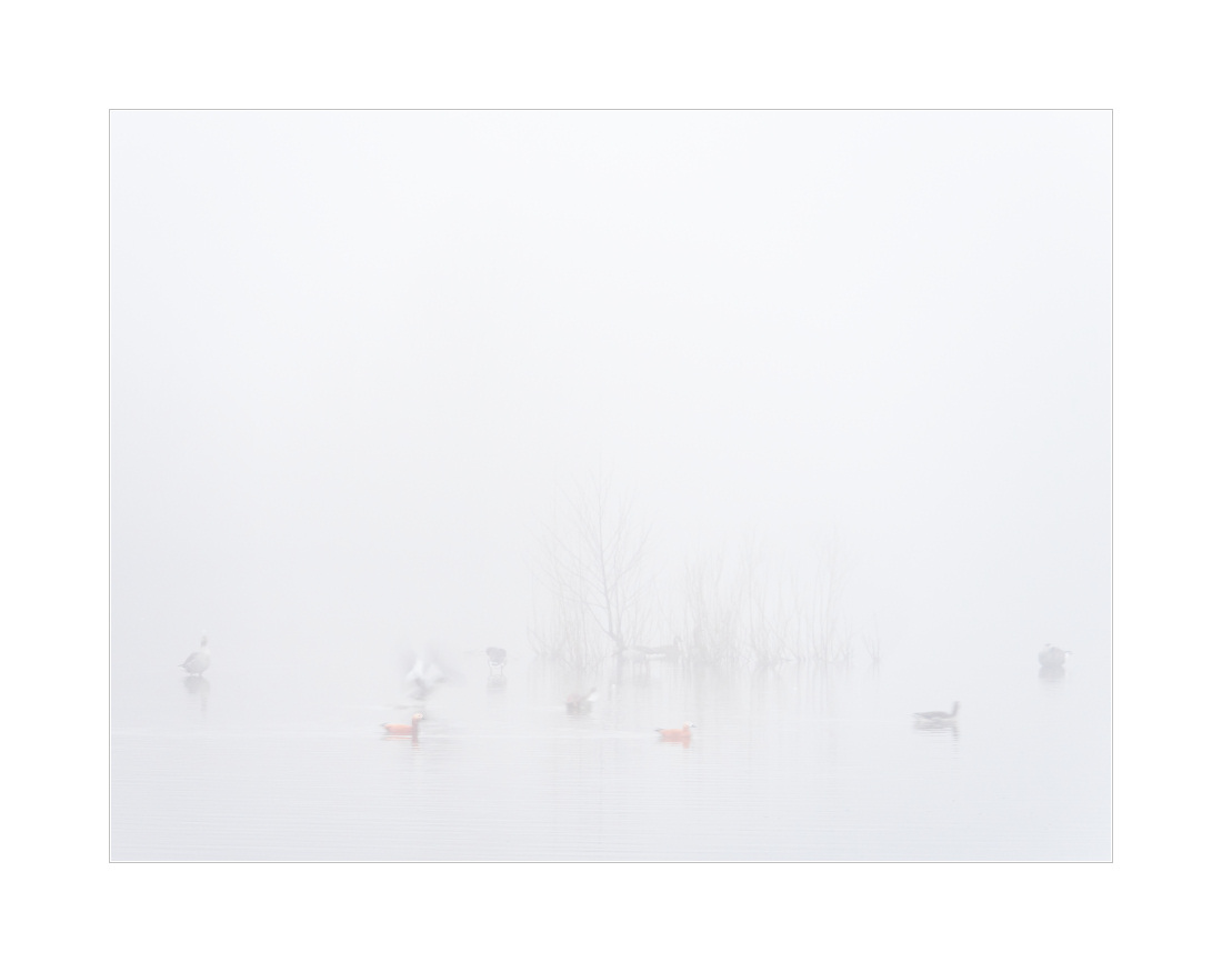 Heute Morgen jedenfalls gab es so einen ersten Anflug von fotogenem Nebelwetter am See. Er hat sich zwar schnell verzogen, aber es hat gereicht um ein Foto mit vier Gänsesorten zu machen. Auf dem Bild theoretisch zu sehen: Graugans, Nilgans, Kanadagans und Rostgans. Letztere war für mich eine Premiere dort, Radau machen die jedenfalls genug…