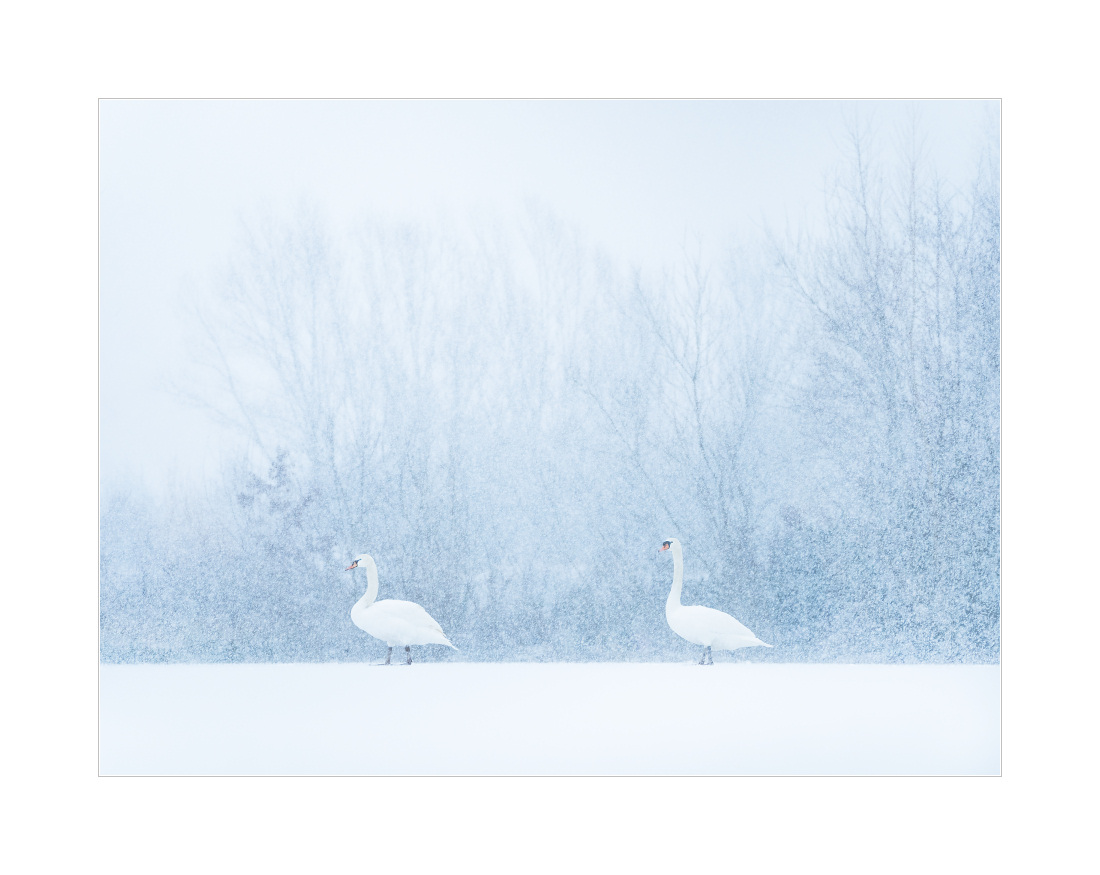 Na damit hatte ich jetzt nicht unbedingt gerechnet. Hat es doch heute Morgen glatt wieder ein paar wenige Zentimeter Neuschnee gegeben. Genug jedenfalls um… Naja… Schwäne halt! Und direkt im Schneefall hatte ich sie ja jetzt eh noch nicht erwischt. Dieses Manko ist damit dann auch behoben.