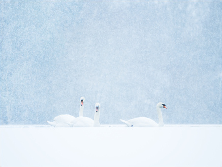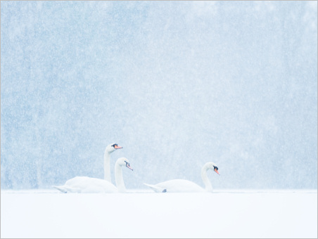Angefangen hat es heute ja mit richtig schlechtem Timing. Dieses Geräusch von startenden Höckerschwänen höre ich wirklich nicht gerne wenn ich gerade irgendwo hinhetze um einen freien Blick zu haben. Und dann müssen die Schwäne vor dem Abflug auch noch alle im Schnee Anlauf genommen haben. War sicher ein guter Anblick! Glücklicherweise (für mich) haben drei Schwäne den Abflug verpasst. Sie haben ein paar Minuten lang am Schnee rumstehend immer wieder schüchtern Töne von sich gegeben. Als aber niemand kam um sie abzuholen, haben sie sich langsam wieder auf den Weg in Richtung letzter offener Wasserstelle gemacht… Hier vier Fotos von heute Morgen: