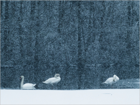 Schwäne bei Schneefall fotografiere ich ja immer wieder besonders gerne. Und auch wenn ich anfangs nicht viel Glück mit den Schwänen hatte, sie zeigten sich dann doch noch: