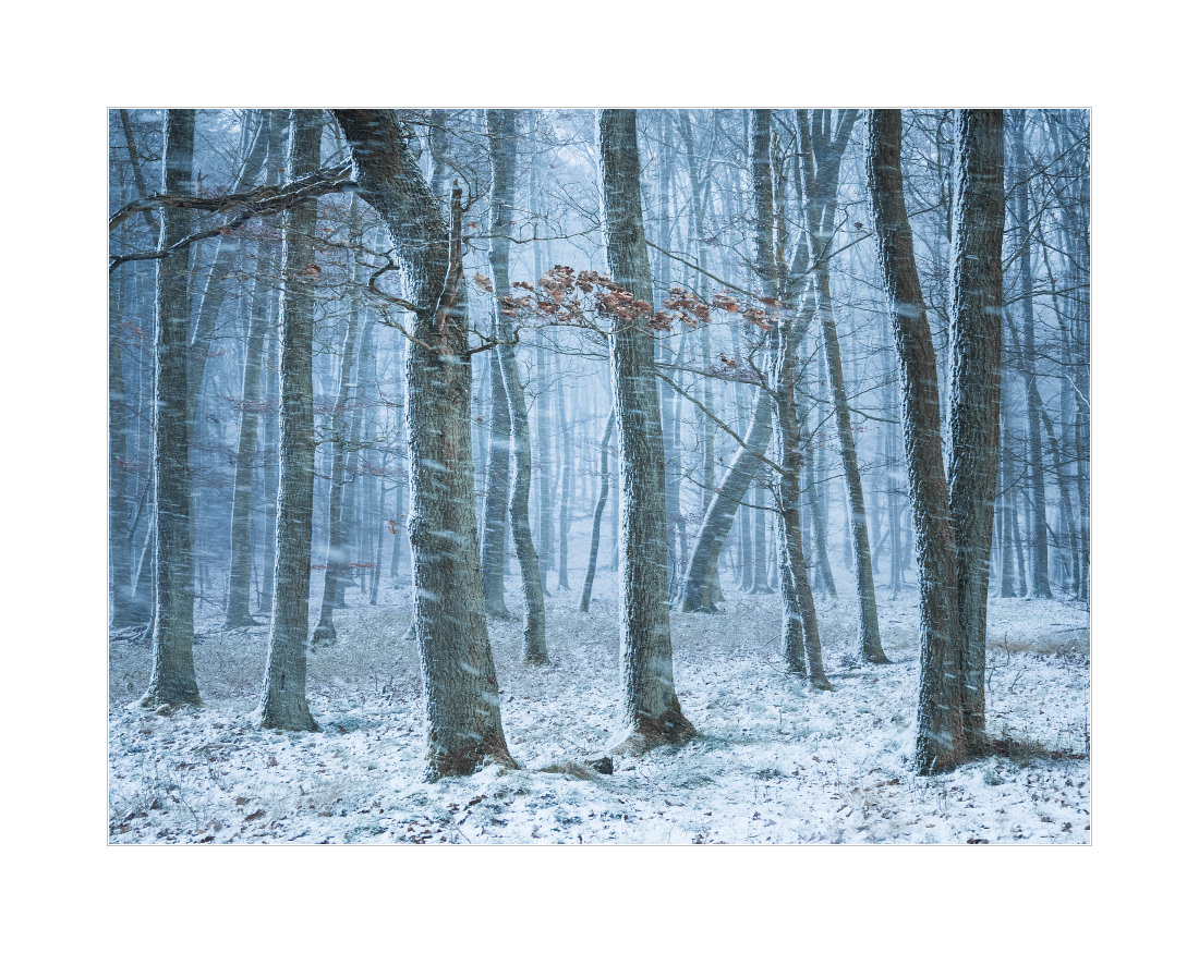 Huch, das war ja jetzt doch mehr als erwartet. Eigentlich sollte es ja nur vormittags noch etwas Schneefall geben und danach sollte sich die Schneefallgrenze dann schnell in höchste Höhen vertschüssen, also so auf 800m Höhe aufwärts. Sah dann aber plötzlich alles ganz anders aus. Spontan bin ich dann zum Rimberg gefahren und habe meinen dortigen Lieblingswald besucht (vermutlich habe ich jetzt genau das eine Schwanenfoto im Starkschneefall verpasst?!). Der Wald dort, das ist ja auch so ein Motiv, das ich wirklich oft fotografiere in letzter Zeit… Hier ein Foto: