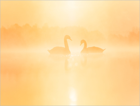 Schon fast zwei Wochen komplett ohne Schwäne hier im Blog, das geht ja nun auch nicht. Praktischer- und vor allem überraschenderweise, gab’s heute mal wieder einen windstillen, sonnigen und kalten (sogar frostig war’s) Sonnenaufgang. Zumindest zwei Grauganspaare haben inzwischen einen Haufen kleine Wollknäuel, die gut bewacht auf den Seen rumtollen. Heute gibt’s aber trotzdem nur Schwäne zu sehen: