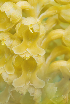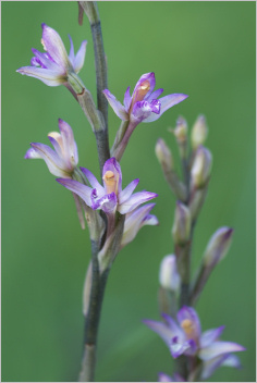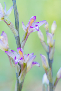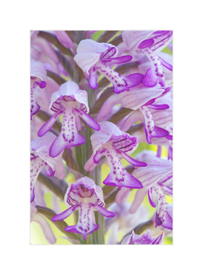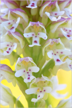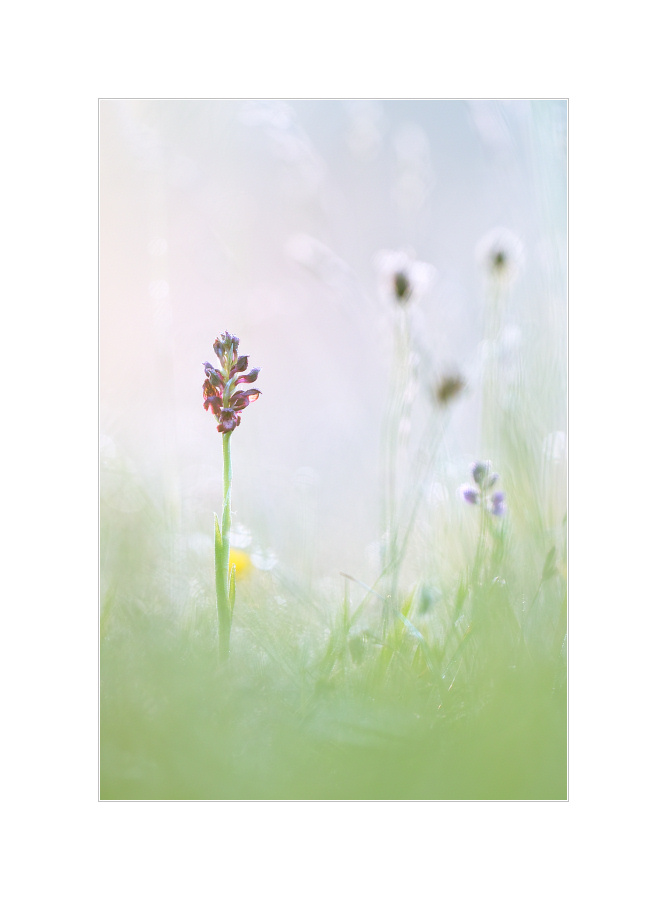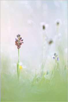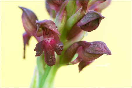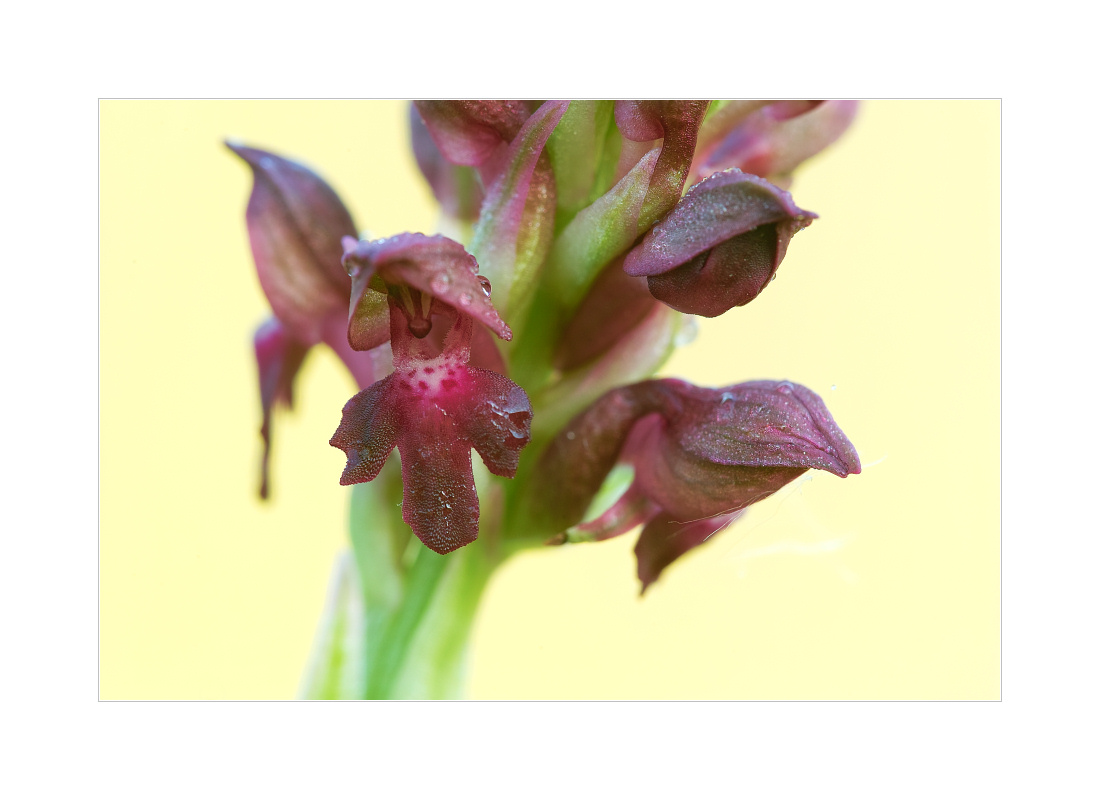 Zusätzlich noch ein paar Orchideendetailaufnahmen. Heute ist auch mal die Vogel-Nestwurz vertreten, gleich auf dem ersten Foto. So wirklich hübsch wirkt sie ja nicht unbedingt, allerdings duftet sie scheinbar intensiv nach Honig (konnte ich leider nicht testen, sie stand hinter einem Zaun). Photosynthese betreibt sie auch nicht, sie hat’s mehr mit den Pilzen im Boden. Auf dem zweiten und dritten Foto gibt’s zwei alte Bekannte: Frühlings-Brandknabenkraut und Helmknabenkraut.
