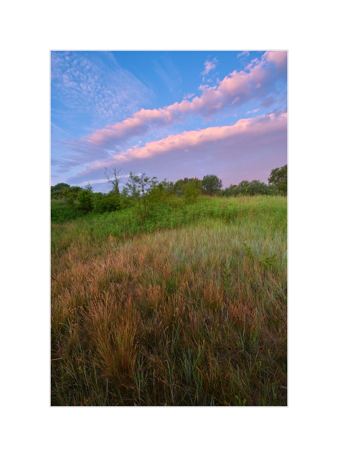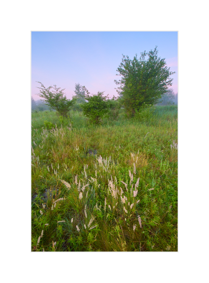 So ging der Fokus dann zwangsweise eher in Richtung Makro- und Landschaftsdetailfotografie. Für ein Landschaftsfoto hat’s aber trotzdem gereicht. Dazu ein Schilfdetail, eine Zikade im Tau und eine blühende Sibirische Schwertlilie.