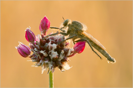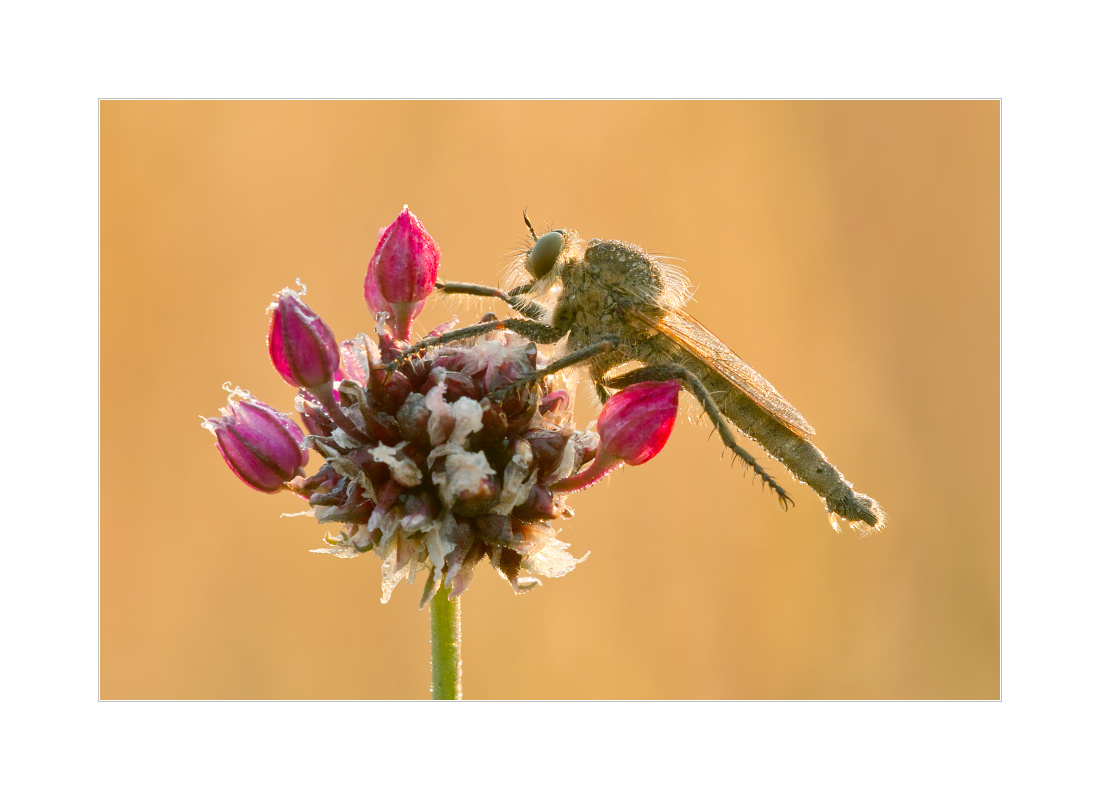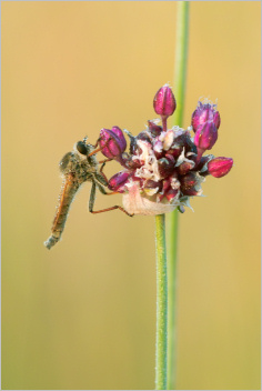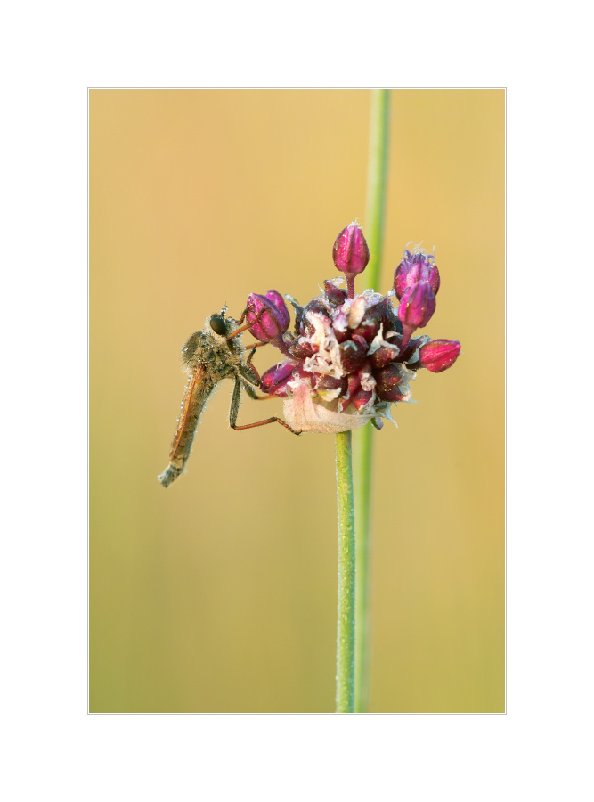 Und hier noch ein Bewohner dieser Wiesen, eine Raubfliege. Sieht durch ihre Größe imposant aus, ist im Gegensatz zu den tausenden Stechmücken (u.ä.) allerdings ein angenehmer Zeitgenosse, zumindest für den Menschen…