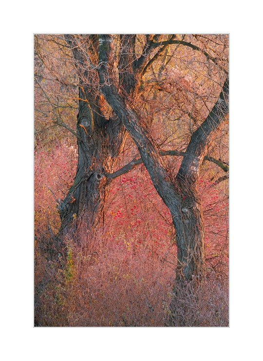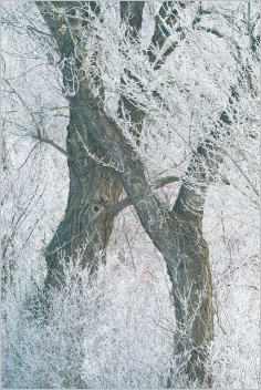 Auf kurze Distanz konnte man allerdings trotzdem noch was erkennen… Und da diese beiden Baumstämme inzwischen ja schon ein Motiv geworden sind, das ich fast jedes Mal fotografiere wenn ich dort bin, hab ich es auch dieses Mal gemacht. Hier hat’s ein paar andere Jahreszeiten davon: Früher Frühling – Frühling – Frühherbst – Spätherbst – Sehr später Spätherbst. Und dieses Mal: Der Winter, mit Reif.