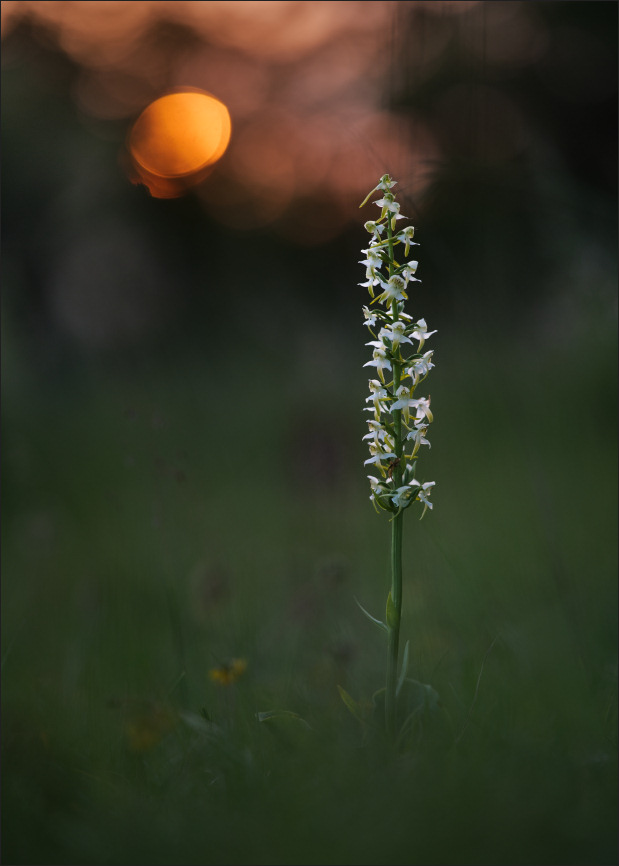 Ja, und eben deshalb bin ich weitergezogen. Bisschen Wiese im Sonnenaufgangslicht und dann doch noch ein Weißes Waldvögelein.