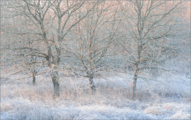 Nachdem es über Nacht so richtig schön kalt war, hat’s nicht mal Nebel gebraucht um die Landschaft so richtig schön einzueisen. Der Nebel kam dann aber trotzdem, pünktlich zum Sonnenaufgang. Aber nicht in der nervigen Form, der die Sonne einfach komplett verdeckt, sondern in der Form, der durchaus angenehme Effekte auf Fotos hat. Mal war die Sonne im Nebel, mal war der Nebel knapp drunter und insgesamt war’s eine Stimmung, die man so eher nicht all zu oft erlebt.