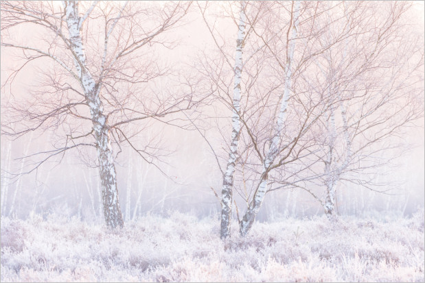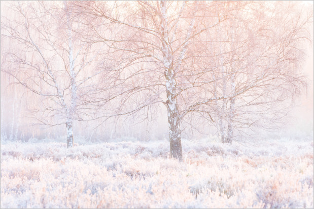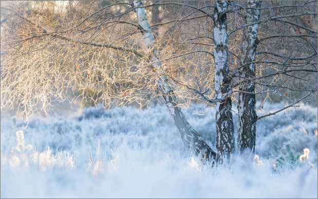 Der erste Frühlingstag war genau wie der letzte Wintertag! Bisschen neblig und dazu frostig. Dieses Mal war’s wohl noch ein bisschen kälter bzw. war der dünne Nebel länger anwesend. Jedenfalls hatten die Birken einen feinen Eisüberzug. Wunderbar! Und dann das alles im Licht der gerade aufgehenden Sonne, die durch den sanften Nebel scheint. Gibt es schönere Stimmungen? Glaube nicht. Vielleicht doch? Egal! Jedenfalls, genial!