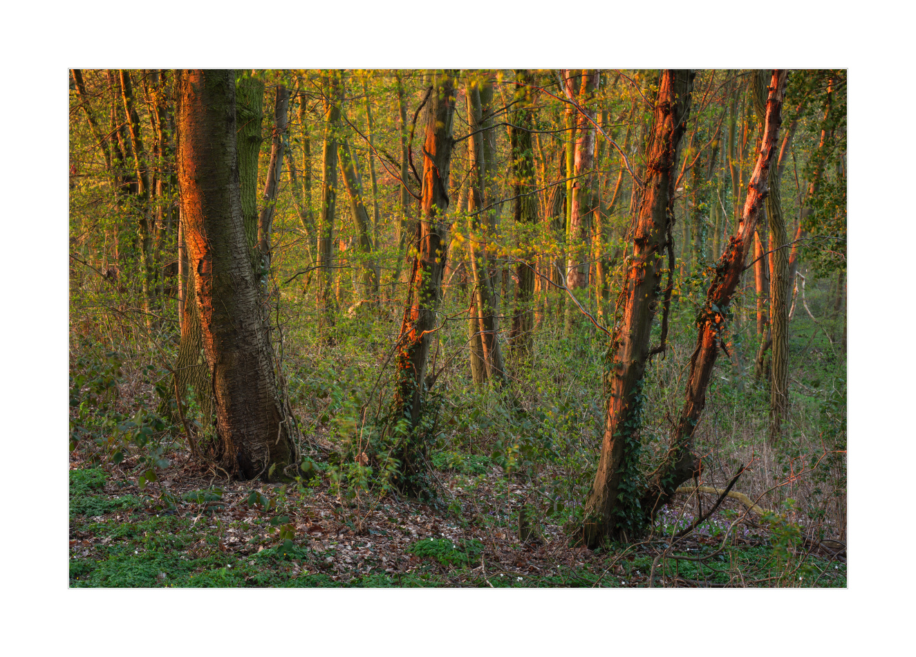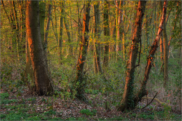 Und weil es so langsam wieder frisches Laub in den Wäldern gibt und ich in letzter Zeit sowieso mehr als genug Blumen bei Sonnenaufgang fotografiert habe, habe ich heute Morgen einfach im Blausternchengebiet auf der anderen Rheinseite auf den Sonnenaufgang gewartet um ein Waldfoto mit tiefstehender Sonne zu machen. Wie immer, mit etwas Nebel wäre alles besser, aber den gibt es weiterhin nicht. Aber das frische Grün macht sich einfach gut. Es wird! Das Grün kommt mit großen Schritten.