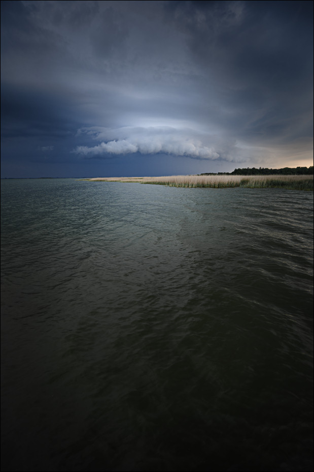 Gleich am ersten Abend gab’s einen netten Gewitteraufzug überm Boddengewässer. Ein gern gesehenes Motiv. Sehe ich hier in Bonn sowieso viel zu selten. Was vor allem daran liegt, dass sich mein Interesse Gewitter zu fotografieren antiproportional zur Menge an störenden Zivilisationsspuren entwickelt. Und weil hübsche Gewitterwolken meistens recht viel Weitwinkel brauchen… Nun ja!