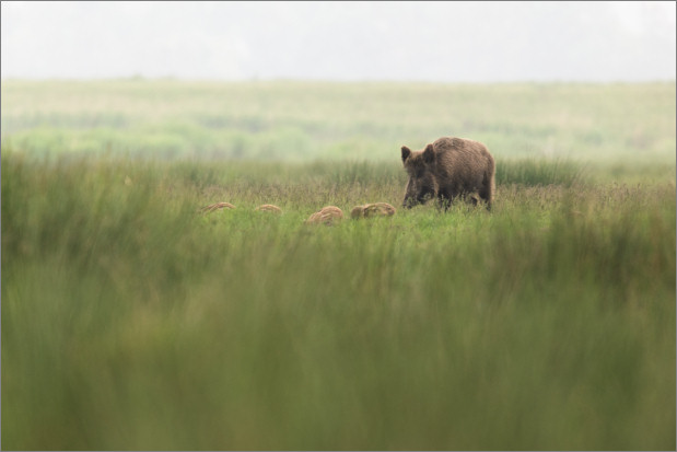 Am Darß scheinen die Schweine auch von der gemütlichen Sorte zu sein. Hatte die ganze Zeit keine einzige ungute Begegnung, dabei hätte es mehr als genug Gelegenheiten gegeben. Gelegenheiten sie zu fotografieren gab es allerdings nicht so viele. Wildschweinfotografie ist aber auch jetzt nicht unbedingt eine Sache, die ich in meiner Zeit dort oben an der Ostsee irgendwie forciert hätte. Ein Foto habe ich trotzdem machen können. Inklusive “Oh-sind-die-süß”-Frischlingen.