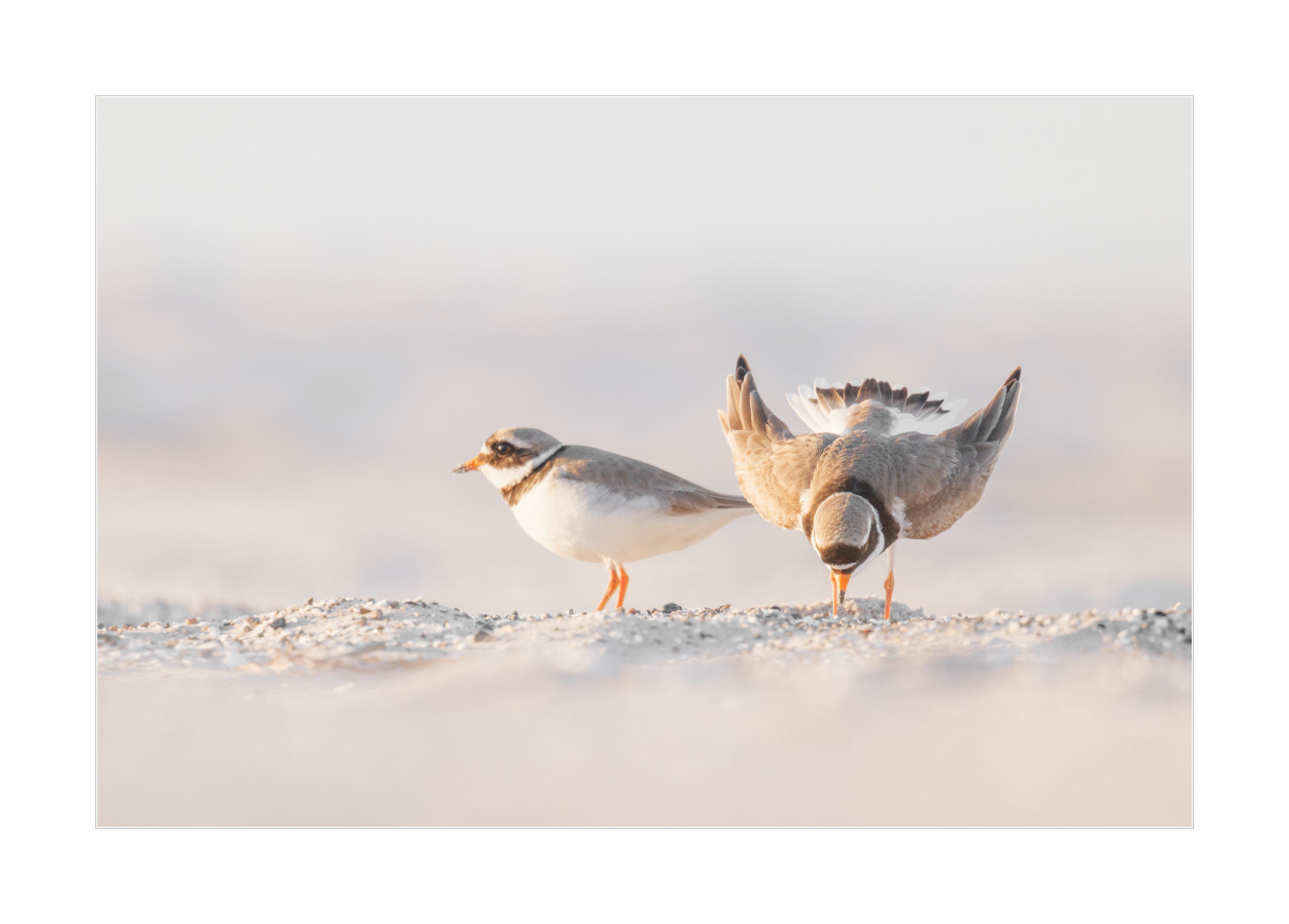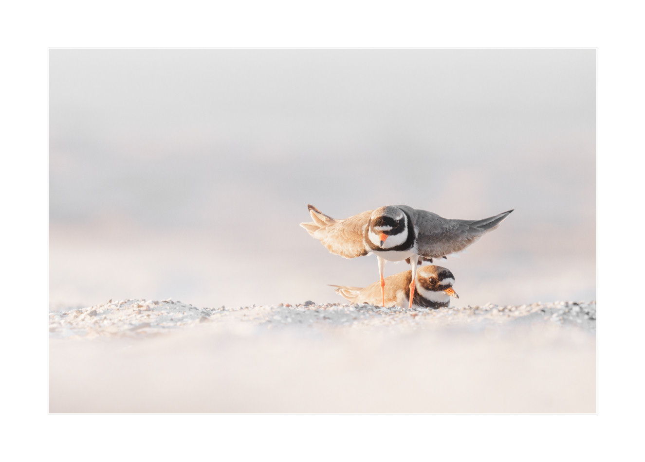 Noch spannender als der Flussregenpfeifer waren dann tatsächlich diese beiden Sandregenpfeifer am letzten Abend bei Sonnenuntergang. Das war einfach nur nett zu beobachten wie die beiden fleißig dabei waren frischen Nachwuchs zu produzieren. Ich war so fasziniert von dem ganzen Geschehen, dass ich sogar irgendwann wohl einfach nicht mehr daran gedacht habe mein Supertelezoom voll bis zum Anschlag auszunutzen. Faszinierend! Bester Abend seit Langem!