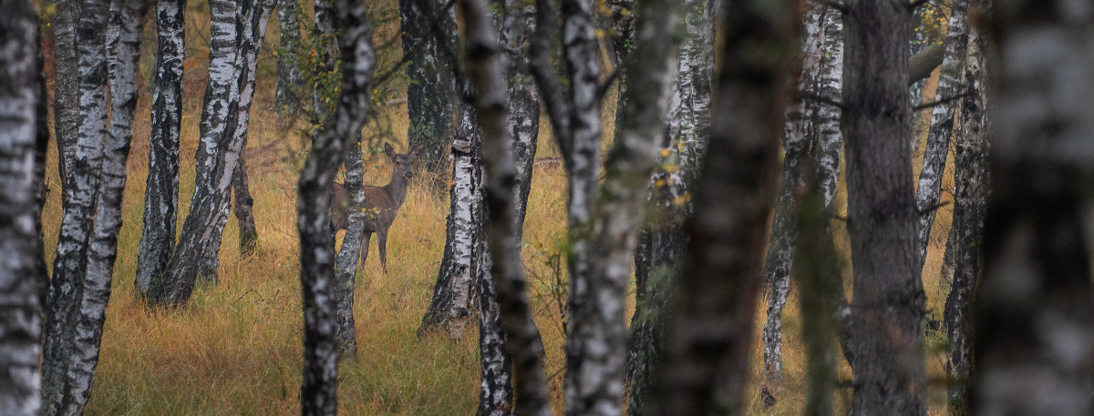 Ich war gestern Morgen einfach in der Wahner Heide unterwegs. Hirsche, Birken, Fliegenpilze… Was die Hirsche (Klick mich an für eher nicht so gutes Foto) betrifft, wollte ich vor allem schauen ob ich endlich meine Kamera richtig eingestellt habe (hab ich wohl, sollte also bei der nächsten guten Gelegenheit passen), bei den Birken und Fliegenpilzen gab’s das übliche: Nebel, Doppelbelichtungen, Makropanoramen und was man halt sonst so macht, wenn man sich total verzettelt und alles außenrum vergisst.