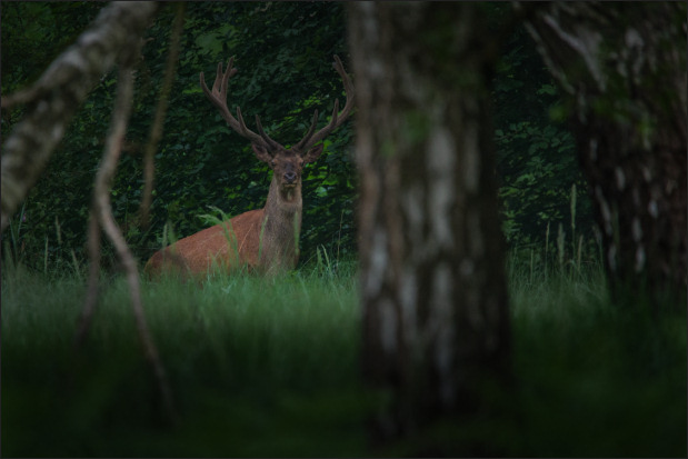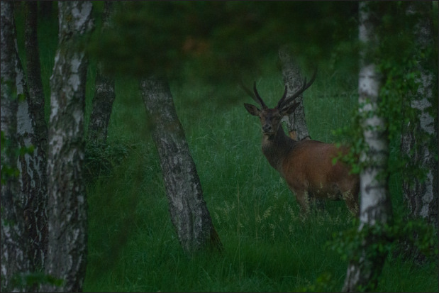 Einen Augenblick später bewegte er sich (leider) seitlich hinter die Birken und fing lautstark an zu röhren (Link zum Foto) nur um kurz danach von ein paar weiteren Hirschen abgelenkt zu werden und wieder komplett im Wald zu verschwinden. Genialer Augenblick!