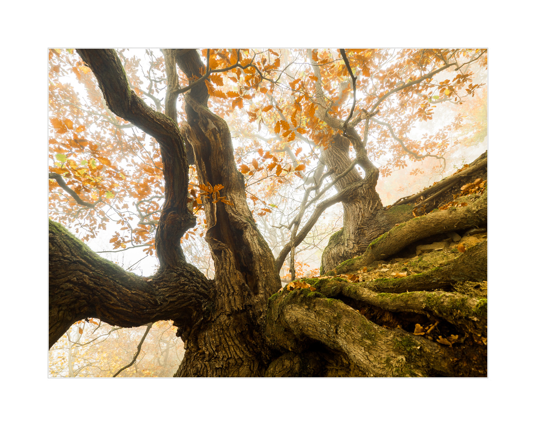 Wobei es war schon etwas nass aus allen Richtungen. Im Wald die Nässe von unten und tropfend von den Bäumen, dazu zwischendurch immer wieder Nieseln aus dem Nebel und dazu, weil es eben nicht nur neblig, sondern auch eher warm war und ich sowieso ein Talent habe was das Schwitzen betrifft, habe auch ich einen nicht zu vernachlässigen Beitrag zur allgemeinen Feuchtigkeit da im Wald nördlich vom Edersee beigetragen…