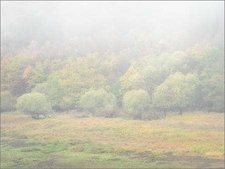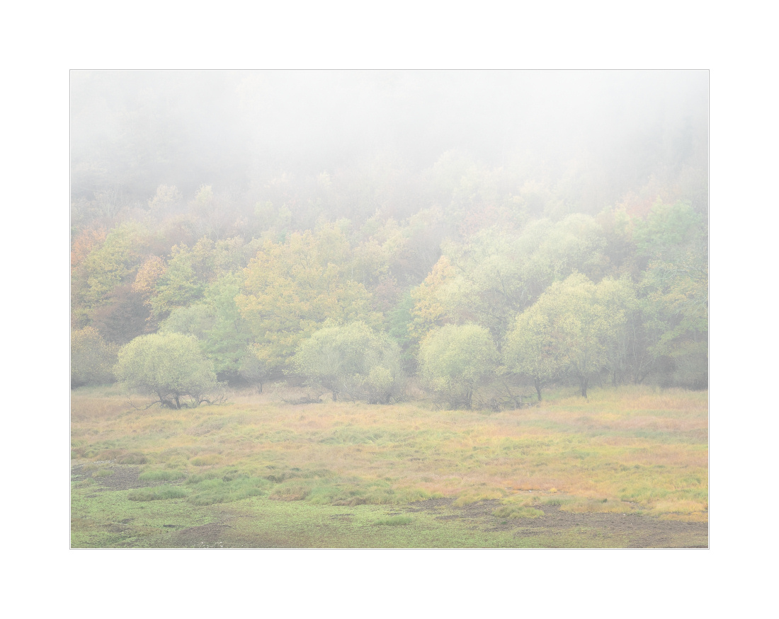 Das letzte Mal als ich so früh aufgestanden bin um zu fotografieren, ging es ja gründlich daneben mit dem Wetter: Keine Sonne und dafür Hochnebel am Ziel. Deshalb hatte ich heute zumindest im Hinterkopf, dass mein Plan schiefgehen könnte. Dieses Mal hatte ich allerdings die Befürchtung, dass ich vor Ort nicht mehr im Nebel stehe und statt dessen mit Pech bald die Sonne scheint. War aber nicht so: Hat alles geklappt wie erhofft. Von Anfang bis Ende durchgehend Nebel. So soll es sein. So mag ich dann sogar den Sommer!
