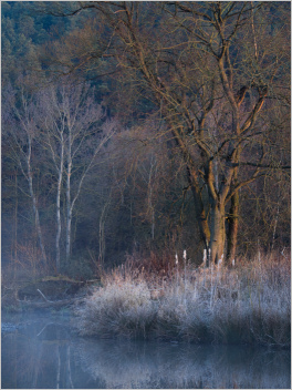 Mist, leider war’s dann doch weniger Nebel als erhofft… Zumindest als die Sonne dann endlich reingestrahlt hat, war der Nebel so ziemlich weg (deshalb dieses Mal auch ein Vorsonnenaufgangsfoto). Trotzdem war’s wieder schön da unten im Tal. Der Eisvogel hat sich auch mal wieder gezeigt. Fast hätte ich ihn erwischt. Wer weiß, vielleicht ist er sogar auf dem Foto hier? ;)