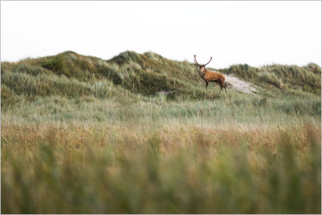 Während ich dann dort so den Hirschen beim Rumhirschen zugeschaut habe (auch dazu später mehr) und meinen Blick immer mal wieder über die Landschaft habe schweifen lassen, ist mir dieser nette Fuchs aufgefallen, der in der Ferne im Gegenlicht über eine Sandbank spaziert ist. Hat wohl nach essbarem gesucht. Irgendwelche angeschwemmten Dinge. Eine Szene genau nach meinem Geschmack.