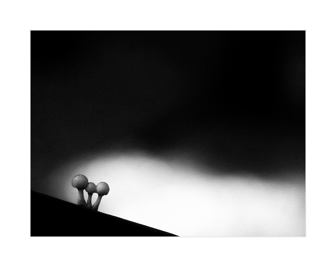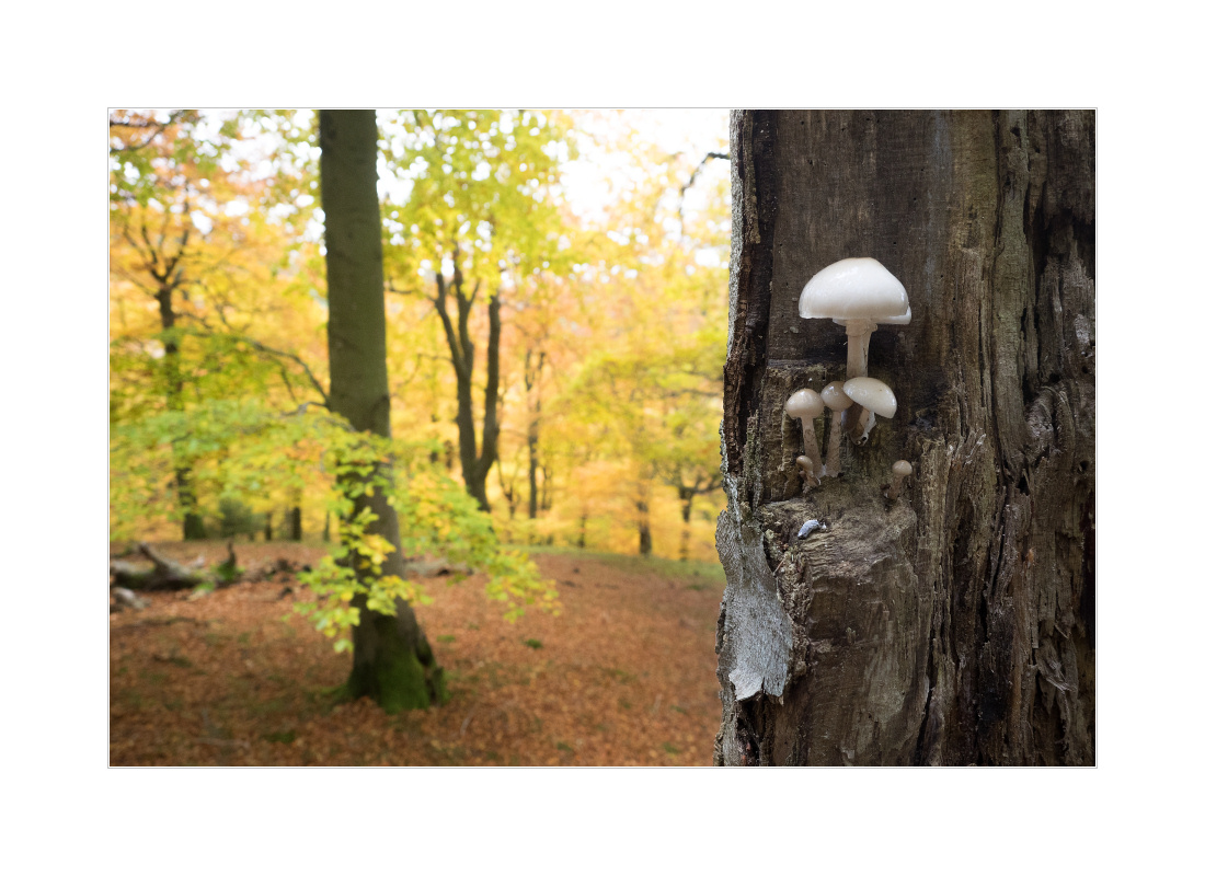 Überall Nebel… Die kalten Temperaturen haben die Seen dampfen lassen und zu allem Überfluss kam dann auch noch von “oben” Nebel dazu. Das hat sich dann schön miteinander verbunden und fertig war die dicke Nebeldecke. Farben sozusagen mal wieder komplett Fehlanzeige. Immerhin scheint es inzwischen so einen ganz kleinen Ausbruch von Pilzwachstum zu geben. Zumindest gefühlt werden es doch langsam mehr in den Wäldern. Etwas wärmere Temperaturen und noch etwas Regen wären allerdings sicher praktisch. Naja, zumindest stand dieser Parasol (ich gehe einfach mal davon aus, dass es einer ist) schön im Wald rum: