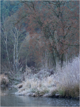 Sogar noch kälter als letzten Samstag war der heutige Morgen. Wenn’s so weitergeht, dann kommt bald der Winter… Da der letzte Besuch schon länger her war, lag nichts näher als endlich mal wieder dem Altarm einen Besuch abzustatten. Leider war’s trotz Kälte ein bisschen wenig Reif und der Nebel war heute Morgen ein paar Meter zu weit oben. Aber naja, auch das ist Spätherbst. Hier das Foto: