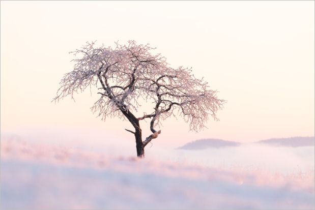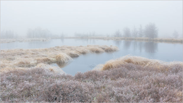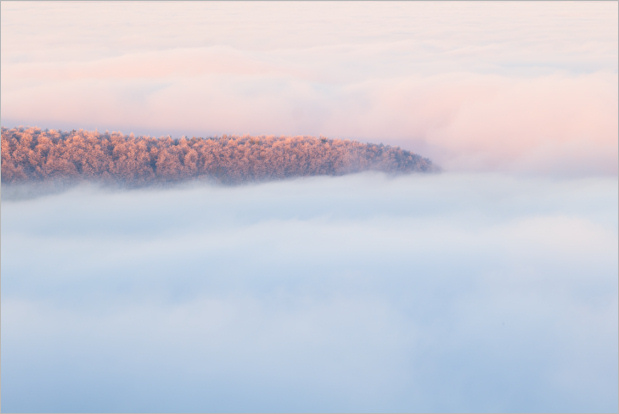 Nachdem es über Nacht so richtig schön kalt war, hat’s nicht mal Nebel gebraucht um die Landschaft so richtig schön einzueisen. Der Nebel kam dann aber trotzdem, pünktlich zum Sonnenaufgang. Aber nicht in der nervigen Form, der die Sonne einfach komplett verdeckt, sondern in der Form, der durchaus angenehme Effekte auf Fotos hat. Mal war die Sonne im Nebel, mal war der Nebel knapp drunter und insgesamt war’s eine Stimmung, die man so eher nicht all zu oft erlebt.
