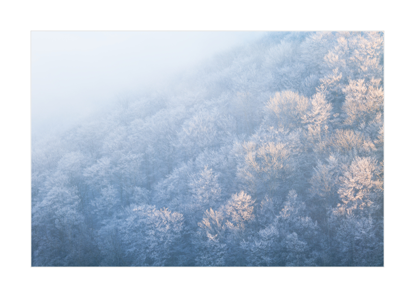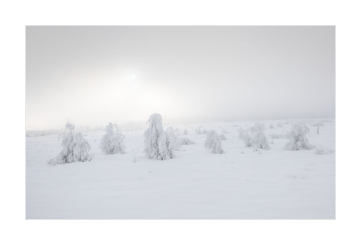 Nachdem es über Nacht so richtig schön kalt war, hat’s nicht mal Nebel gebraucht um die Landschaft so richtig schön einzueisen. Der Nebel kam dann aber trotzdem, pünktlich zum Sonnenaufgang. Aber nicht in der nervigen Form, der die Sonne einfach komplett verdeckt, sondern in der Form, der durchaus angenehme Effekte auf Fotos hat. Mal war die Sonne im Nebel, mal war der Nebel knapp drunter und insgesamt war’s eine Stimmung, die man so eher nicht all zu oft erlebt.