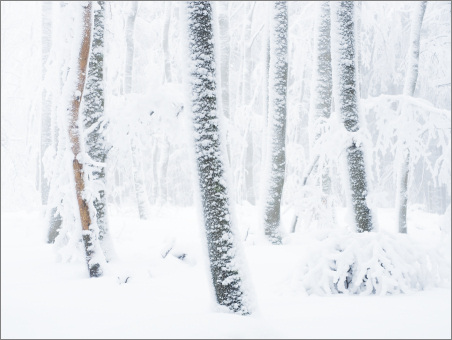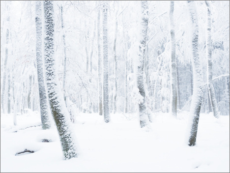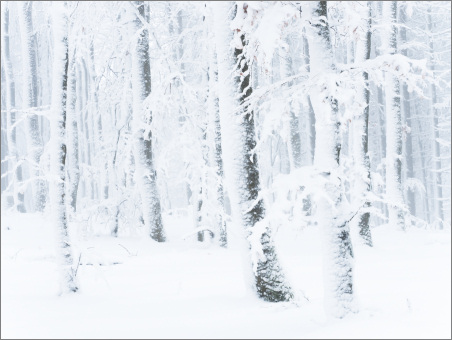 Huch, das war ja jetzt doch mehr als erwartet. Eigentlich sollte es ja nur vormittags noch etwas Schneefall geben und danach sollte sich die Schneefallgrenze dann schnell in höchste Höhen vertschüssen, also so auf 800m Höhe aufwärts. Sah dann aber plötzlich alles ganz anders aus. Spontan bin ich dann zum Rimberg gefahren und habe meinen dortigen Lieblingswald besucht (vermutlich habe ich jetzt genau das eine Schwanenfoto im Starkschneefall verpasst?!). Der Wald dort, das ist ja auch so ein Motiv, das ich wirklich oft fotografiere in letzter Zeit… Hier ein Foto: