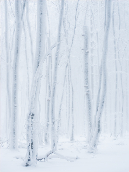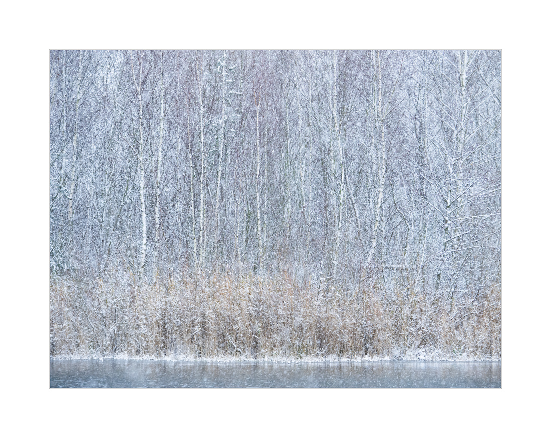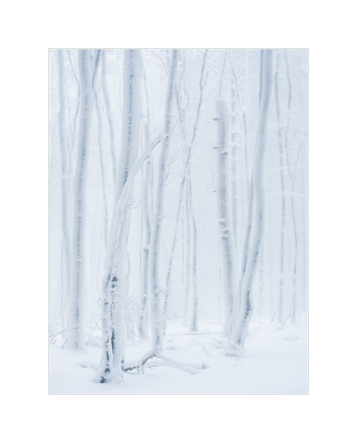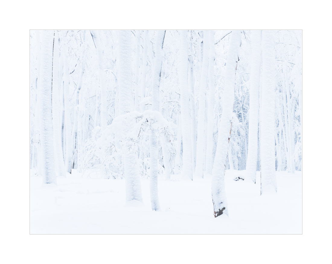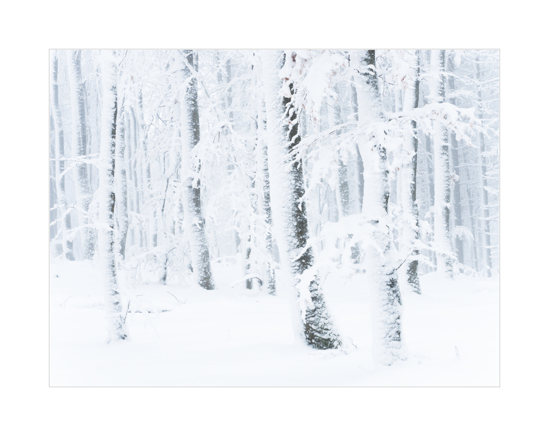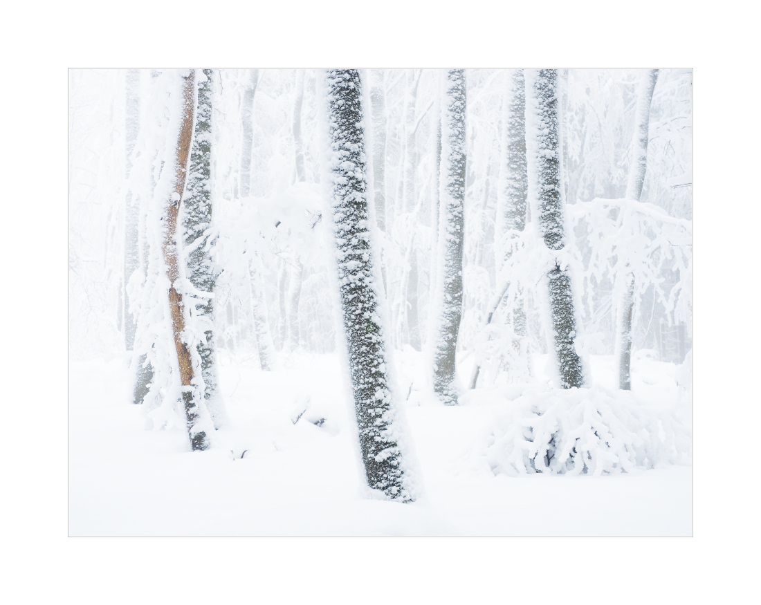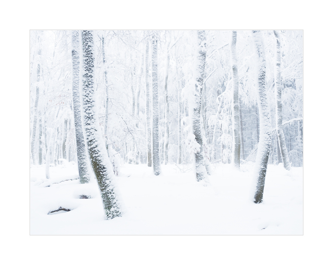 Huch, das war ja jetzt doch mehr als erwartet. Eigentlich sollte es ja nur vormittags noch etwas Schneefall geben und danach sollte sich die Schneefallgrenze dann schnell in höchste Höhen vertschüssen, also so auf 800m Höhe aufwärts. Sah dann aber plötzlich alles ganz anders aus. Spontan bin ich dann zum Rimberg gefahren und habe meinen dortigen Lieblingswald besucht (vermutlich habe ich jetzt genau das eine Schwanenfoto im Starkschneefall verpasst?!). Der Wald dort, das ist ja auch so ein Motiv, das ich wirklich oft fotografiere in letzter Zeit… Hier ein Foto: