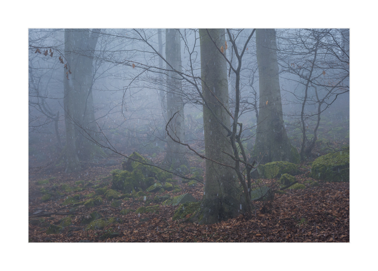 Nur wenige Kilometer nordöstlich, in der Wahner Heide (also auch im Flachland) war’s aber einfach nur krass! Zu viel für viele Bäume. Hatte ich vorher auch noch nicht erlebt. Dauerndes Knacken, Krachen und Knallen. Das war dann auch der Grund dafür, dass ich mein eigentliches Vorhaben, nämlich Hirsche im Schneefall fotografieren, doch einfach mal gelassen habe. Nicht, dass es funktioniert hätte (wobei, wer weiß?), aber der durchgehend durch den Wald gehende Weg kam mir dann doch einen Hauch zu selbstmörderisch vor…