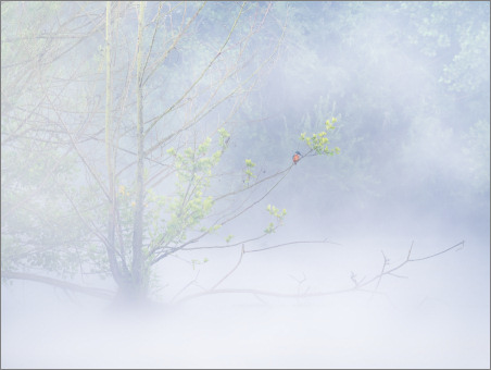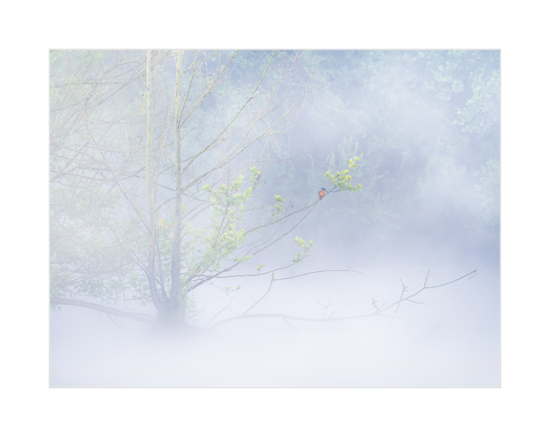 Heute gab es mal wieder so einen kühlen Sommermorgen wie es ihn gerne öfter geben könnte. Vielleicht noch ein paar hohe Wolken weniger, aber ansonsten hat’s voll gepasst. Auch die Seen haben gedampft. Und während ich da so am Ufer (auf irgendein Motiv) gewartet habe, sind mir nicht nur Mäuse fast gegen die Schuhe gelaufen, sondern auch Eisvögel fast gegen den Kopf geflogen. Einen der beiden habe ich dann auch noch fotografieren können. Im Nebel natürlich, wo auch sonst…
