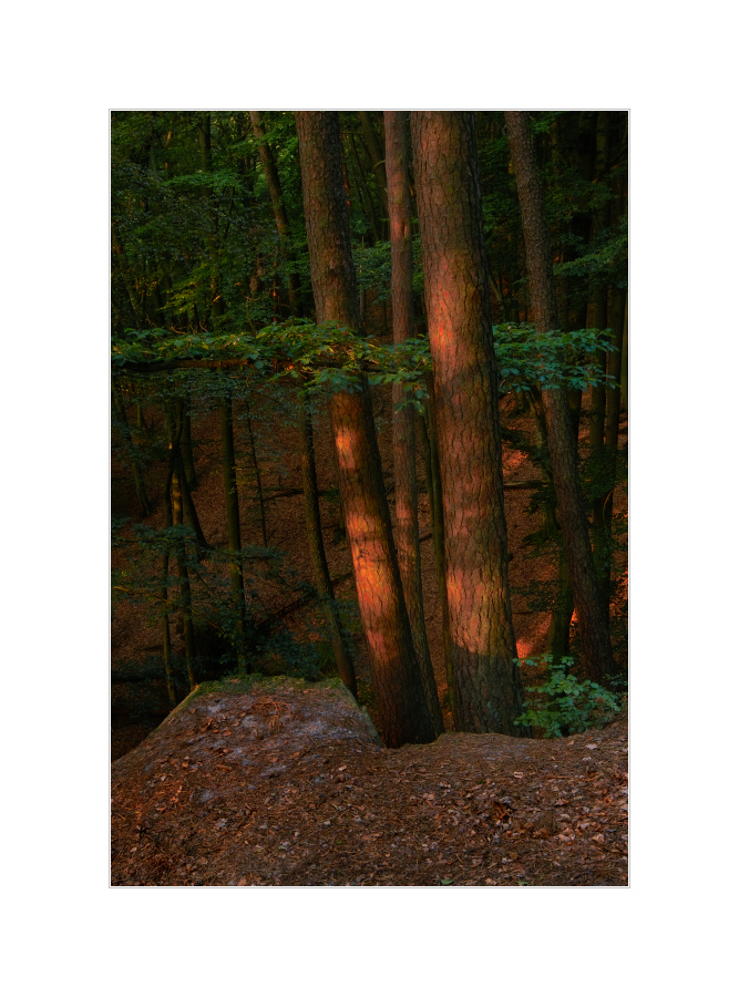 Heute mal wieder etwas aus dem Wald. Den erhofften Nebel gab es zwar erst zu spät (für den ist aber ja sowieso noch den ganzen Herbst Zeit), dafür hat die aufgehende Sonne ein paar schön Akzente gesetzt.