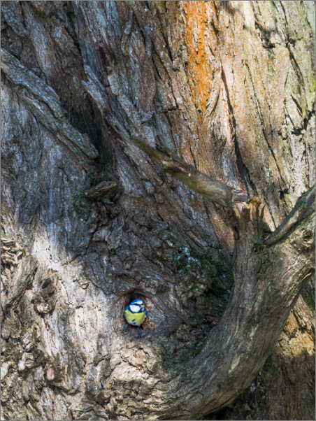Auch wenn ich eigentlich gar nicht fotografieren wollte, sondern “nur” auf der Suche nach neuen Motiven hier in der näheren Umgebung war, hatte ich die Kamera dabei (ist ja auch für Notizen ganz gut). Und weil das Supertele so schön leicht ist, hatte ich auch das dabei. Ein paar Motive für spätere Fotos habe ich gefunden, wobei sich da ja immer die Frage stellt wie’s dann wirklich bei gutem Licht und/oder Nebel ausschaut. Ein paar Fotos habe ich auch gemacht. Die Überschrift verrät’s schon: Vögel. Das heutige Highlight war eine rufende Eule. Ich habe zwar kurz versucht dem Ruf zu folgen und sie zu finden, dann aber schnell wieder aufgegeben… Auf den Fotos also keine Eule, dafür ein Suchbild mit Star und zwei Blaumeisen: