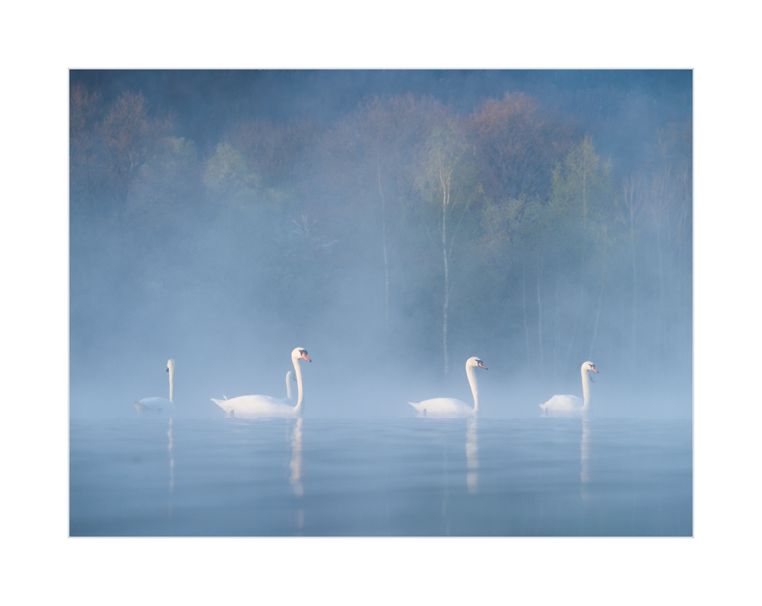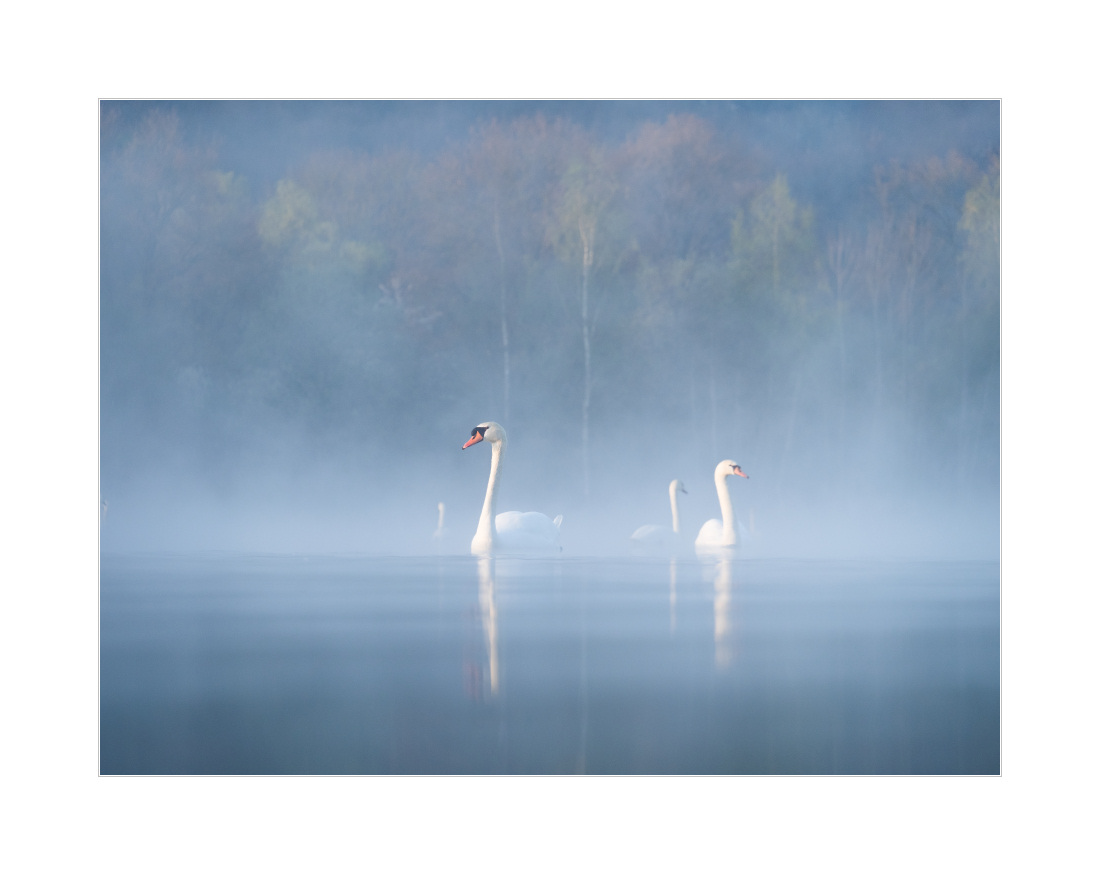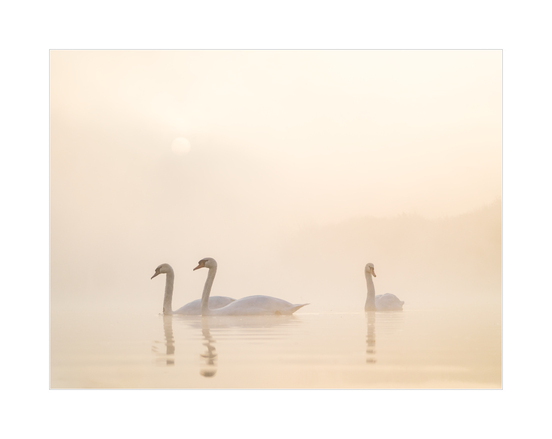 Also, wie gesagt, ein kleines bisschen Nebel hat’s gegeben und dazu, wie letztens schon angemerkt, viele Schwäne. Gute Kombi für ein paar Fotos von Schwänen! Hier ein paar Eindrücke von heute Morgen: