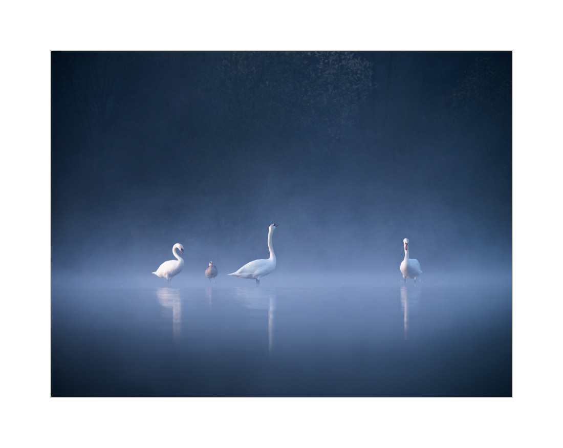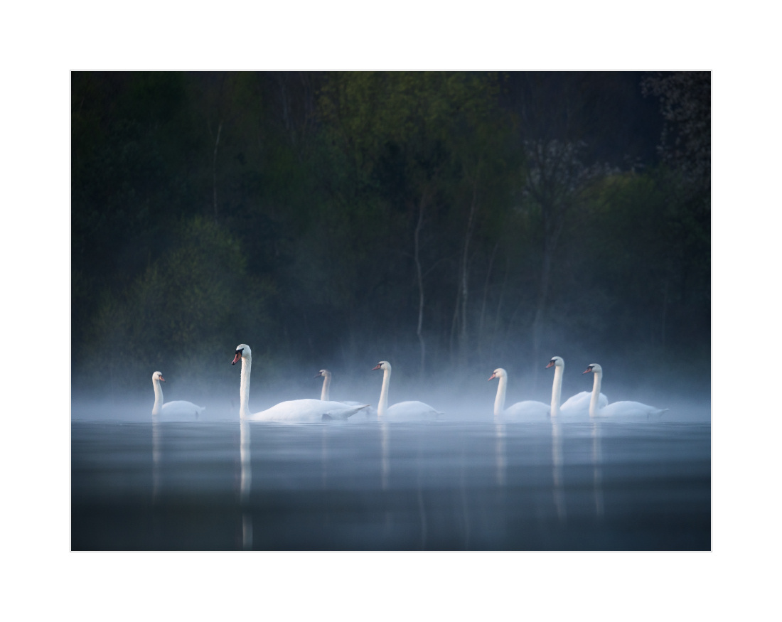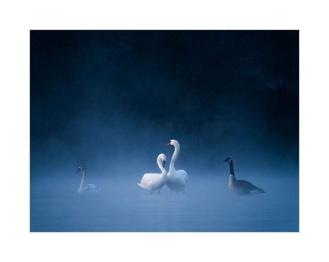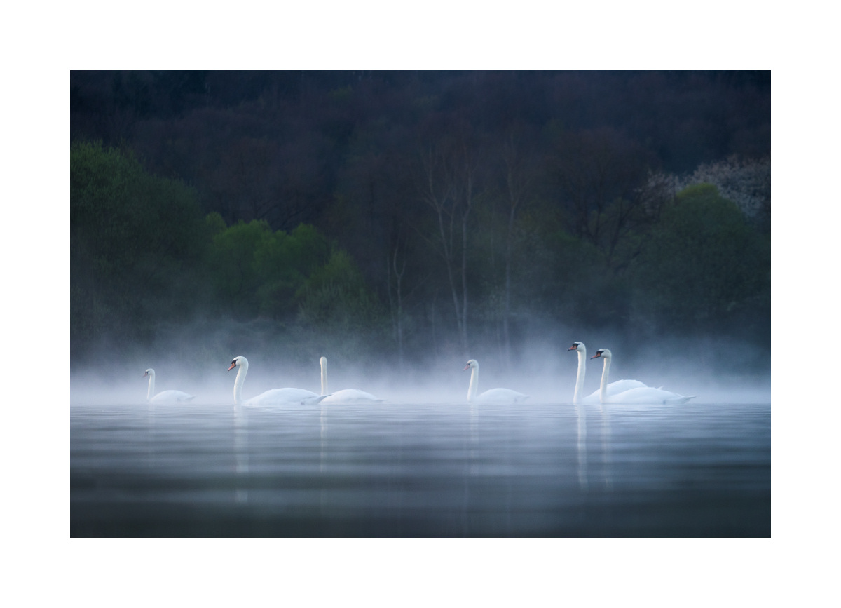 Also, wie gesagt, ein kleines bisschen Nebel hat’s gegeben und dazu, wie letztens schon angemerkt, viele Schwäne. Gute Kombi für ein paar Fotos von Schwänen! Hier ein paar Eindrücke von heute Morgen: